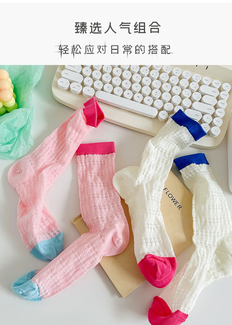 양말 여름 여성 얇은 컬러 블록 파일 양말 중공 메쉬 스타킹 땀 흡수면 양말 일본 중반 종아리 양말 여성 양말