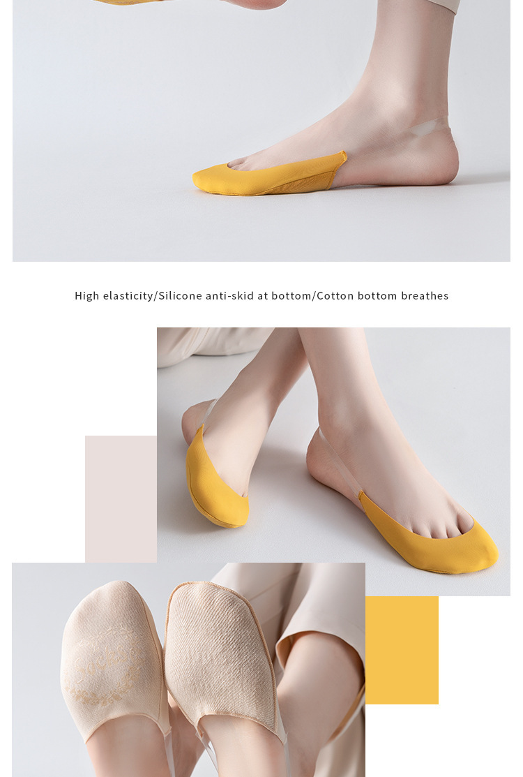 여성용 하이힐 양말, 아이스 실크 보트 양말, 면 테리 밑창, 땀 흡수, 여름용 얇은 실리콘 미끄럼 방지 앞발 부분 양말스토어 가기