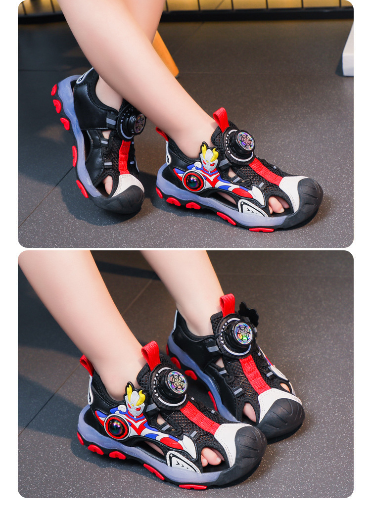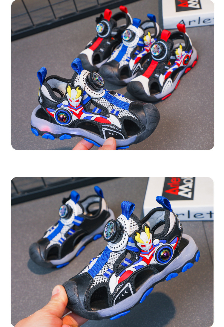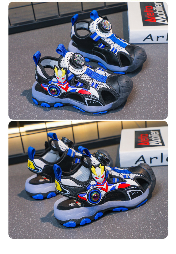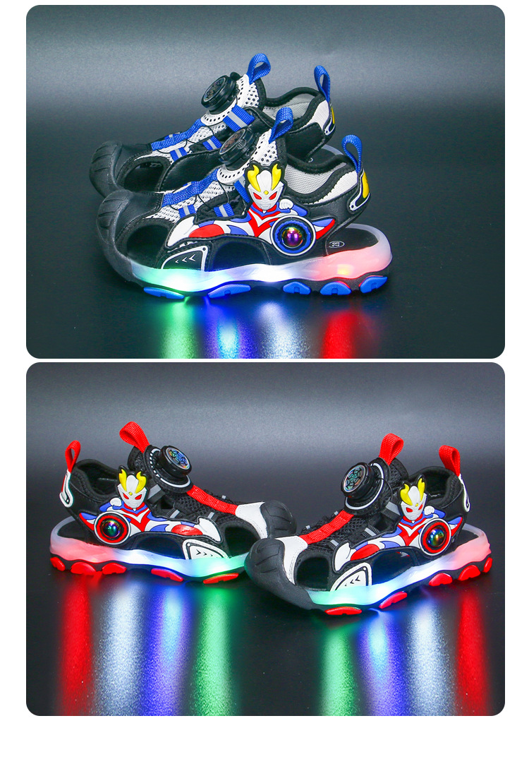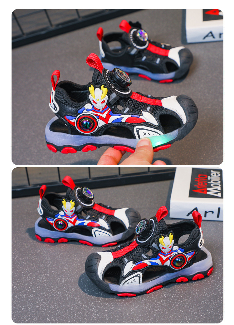라이트가있는 소년 바오 터우 샌들 2025 여름 새로운 회전 버클 어린이 신발 안티 킥 초등학생 신발스토어 가기