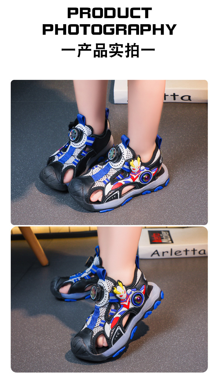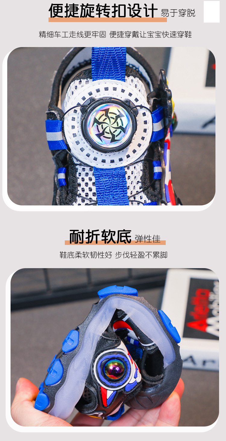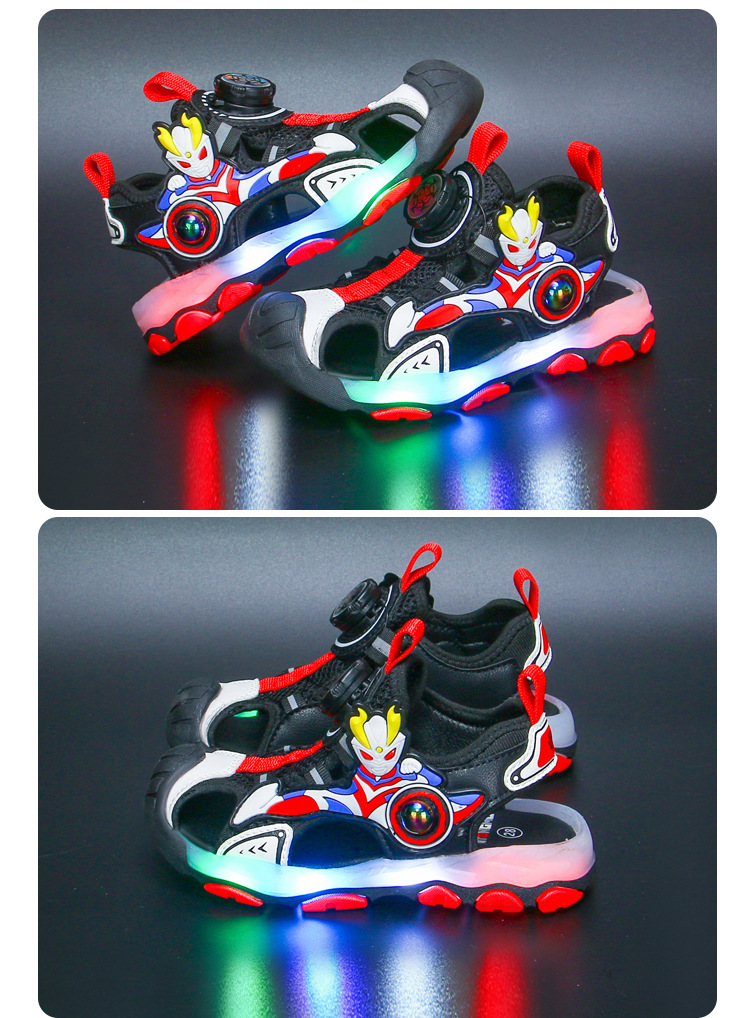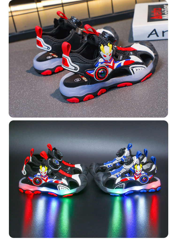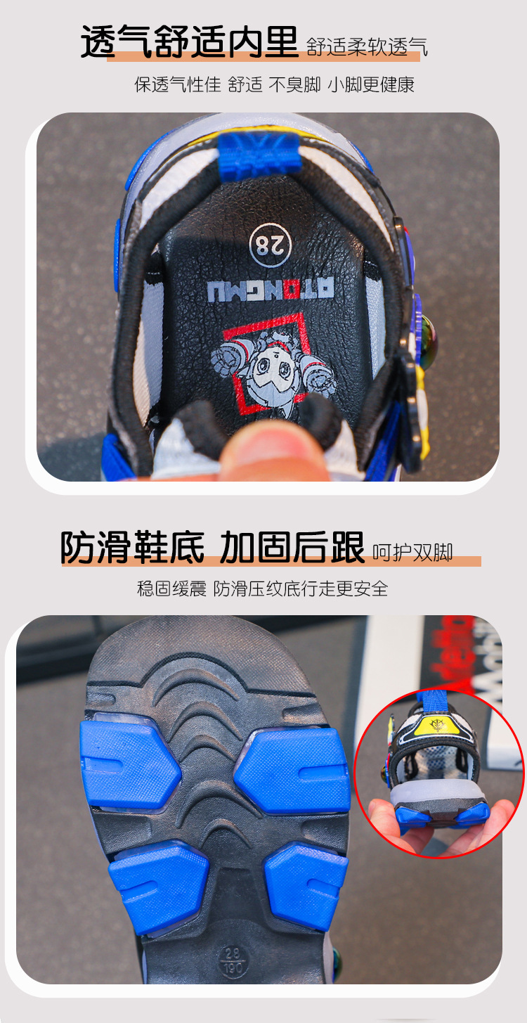 라이트가있는 소년 바오 터우 샌들 2025 여름 새로운 회전 버클 어린이 신발 안티 킥 초등학생 신발스토어 가기