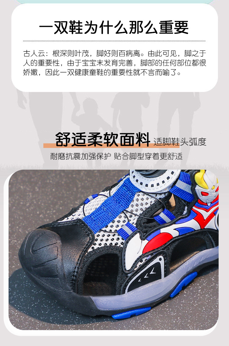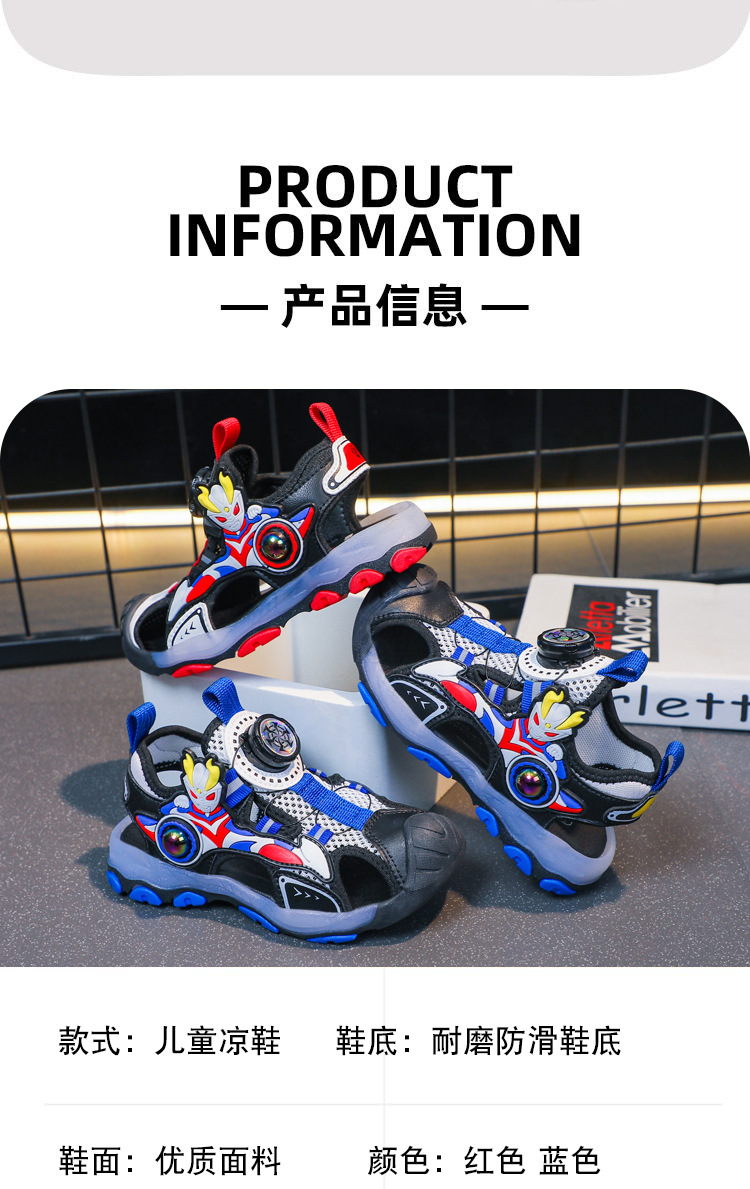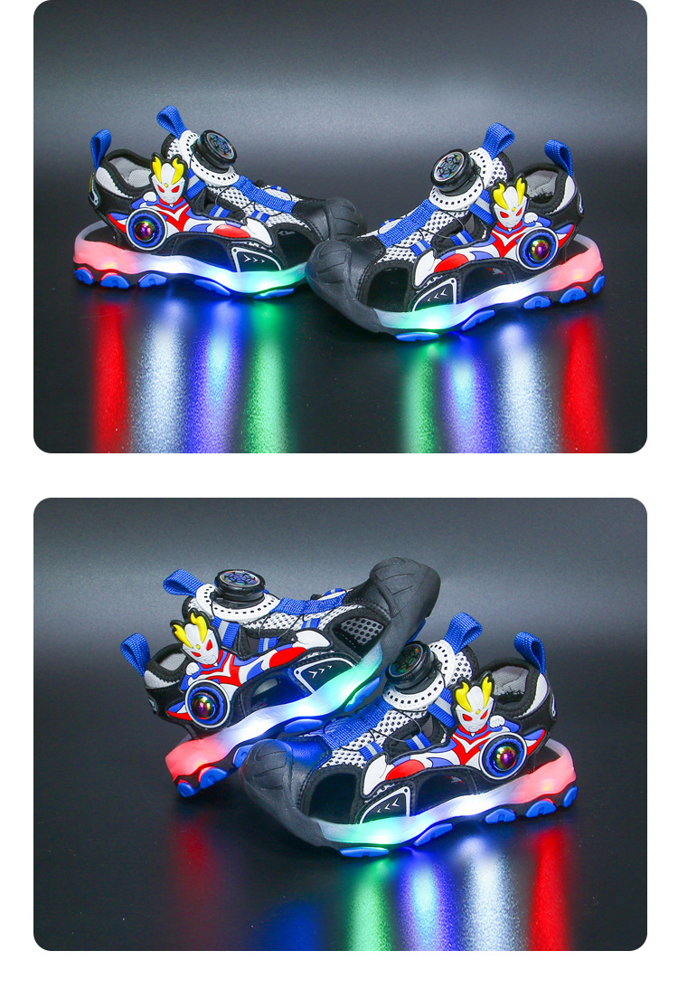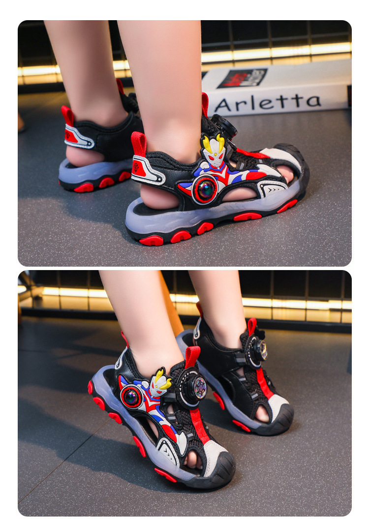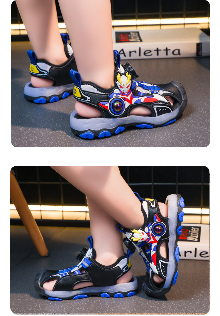 라이트가있는 소년 바오 터우 샌들 2025 여름 새로운 회전 버클 어린이 신발 안티 킥 초등학생 신발스토어 가기