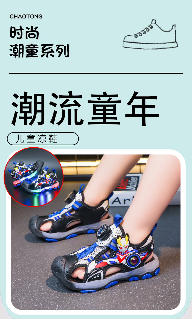 라이트가있는 소년 바오 터우 샌들 2025 여름 새로운 회전 버클 어린이 신발 안티 킥 초등학생 신발