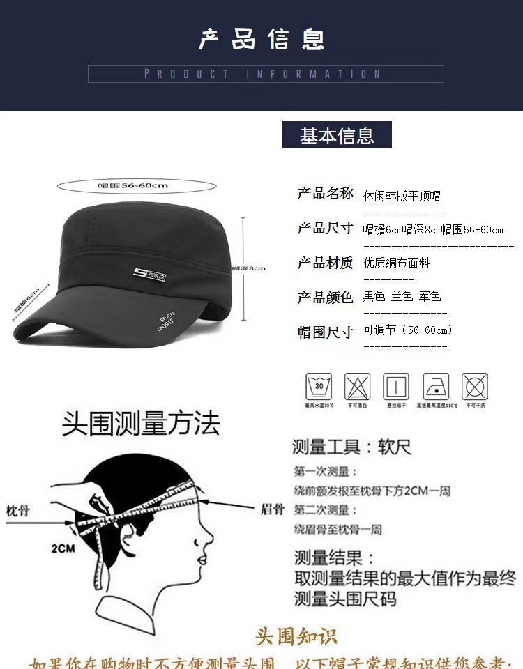남성 캐주얼 속건 플랫 캡 여름 야외 캐주얼 차양 캡 중년 봄과 여름 얇은 모자스토어 가기