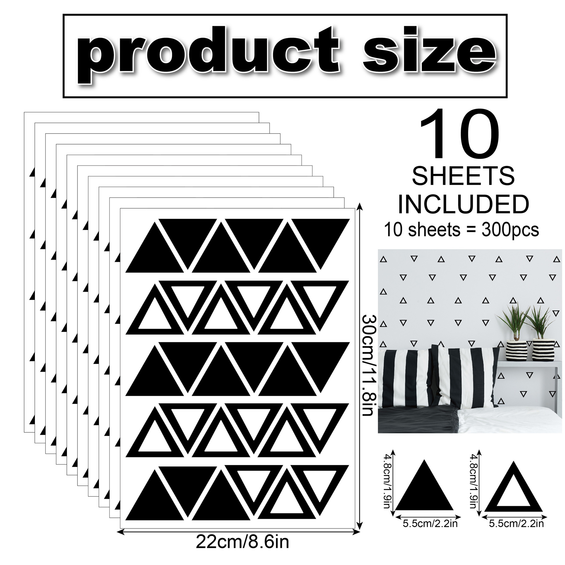 • 검은색 삼각형 기하학적 벽 스티커