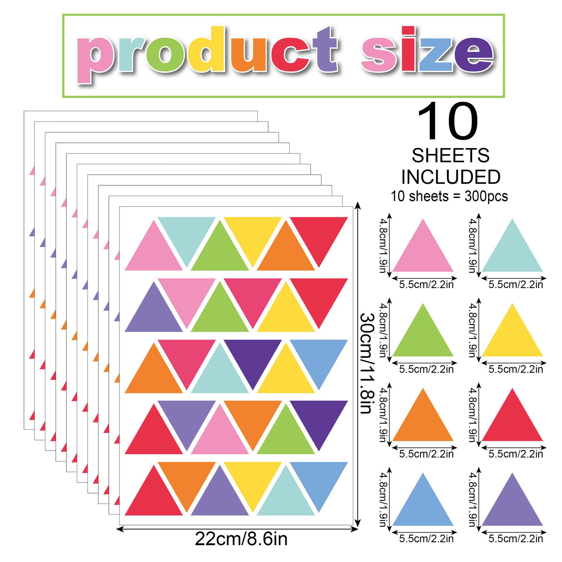 • 다채로운 삼각형 기하학적 벽 스티커