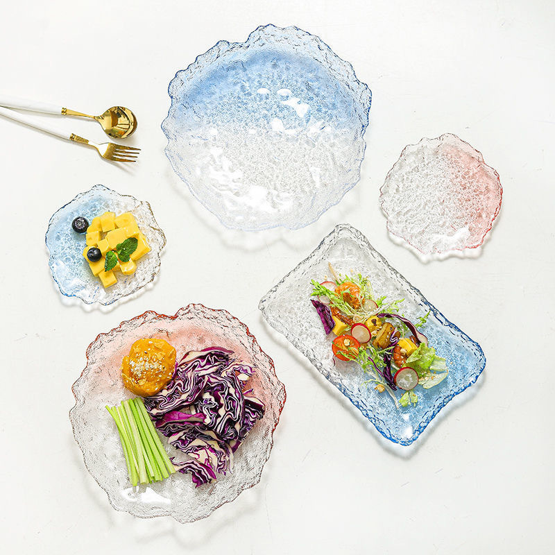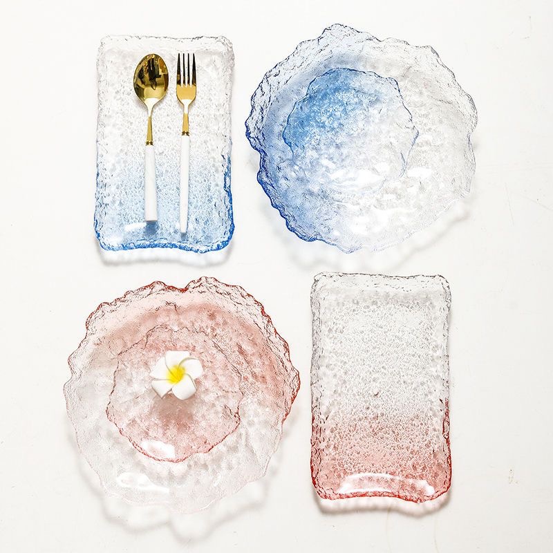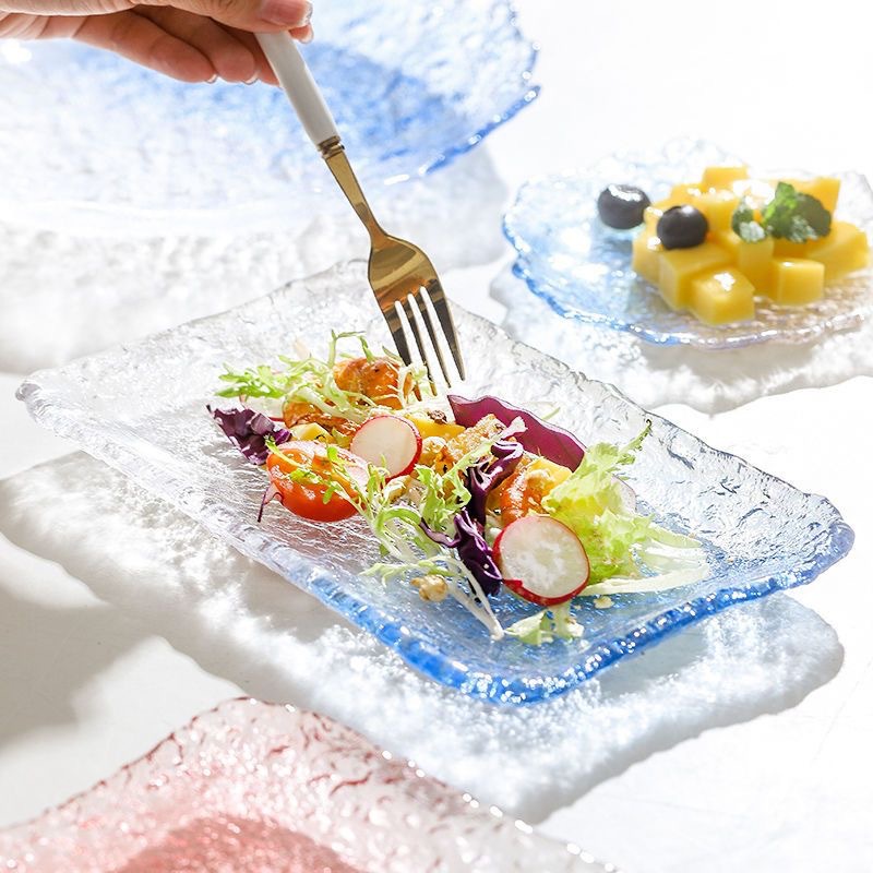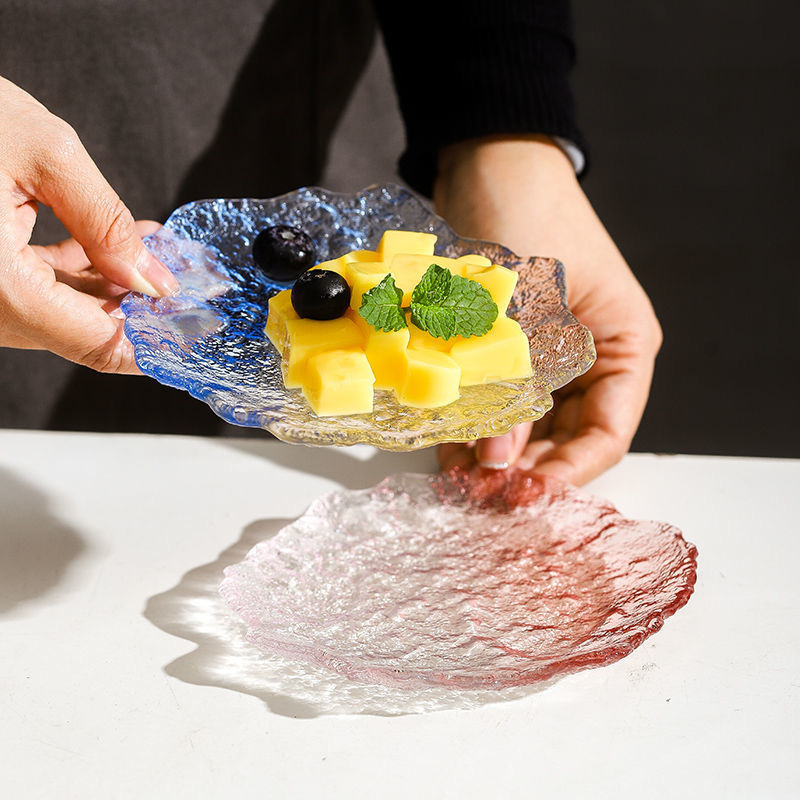 Ins 스타일 빙하 유리 아침 식사 접시 과일 접시 크리 에이 티브 인터넷 연예인 소스 접시 홈 스낵 서양 음식 과일 접시