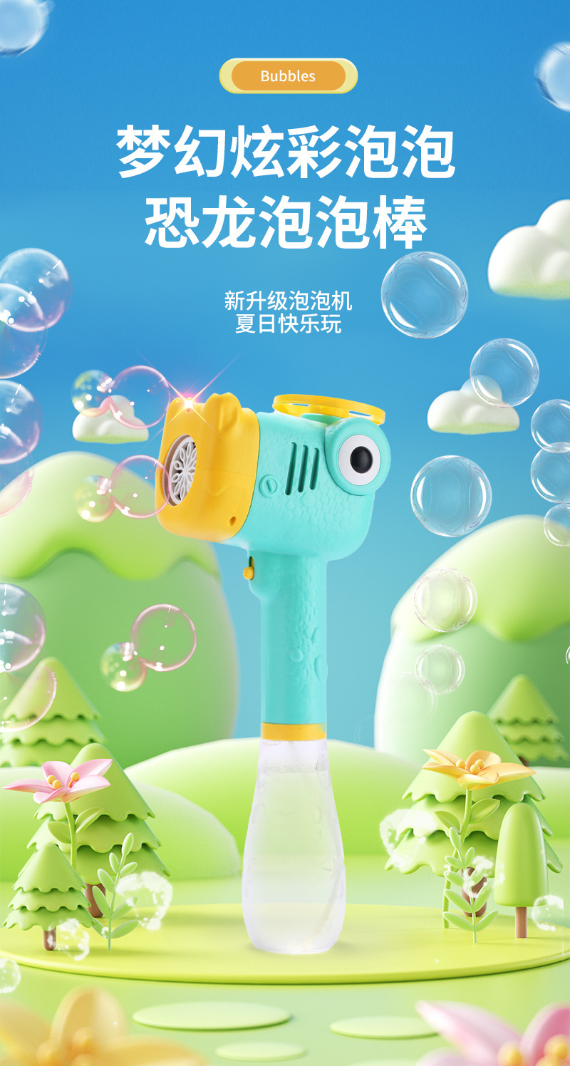 쉐이크 톤 공룡 버블 스틱 버블 머신 어린이 휴대용 전기 자동 야외 부모-자식 대나무 잠자리 장난감스토어 가기