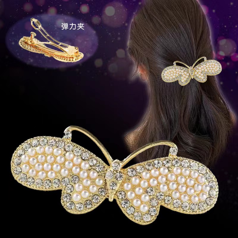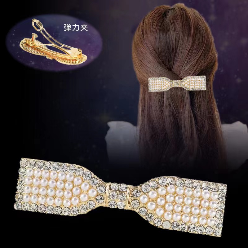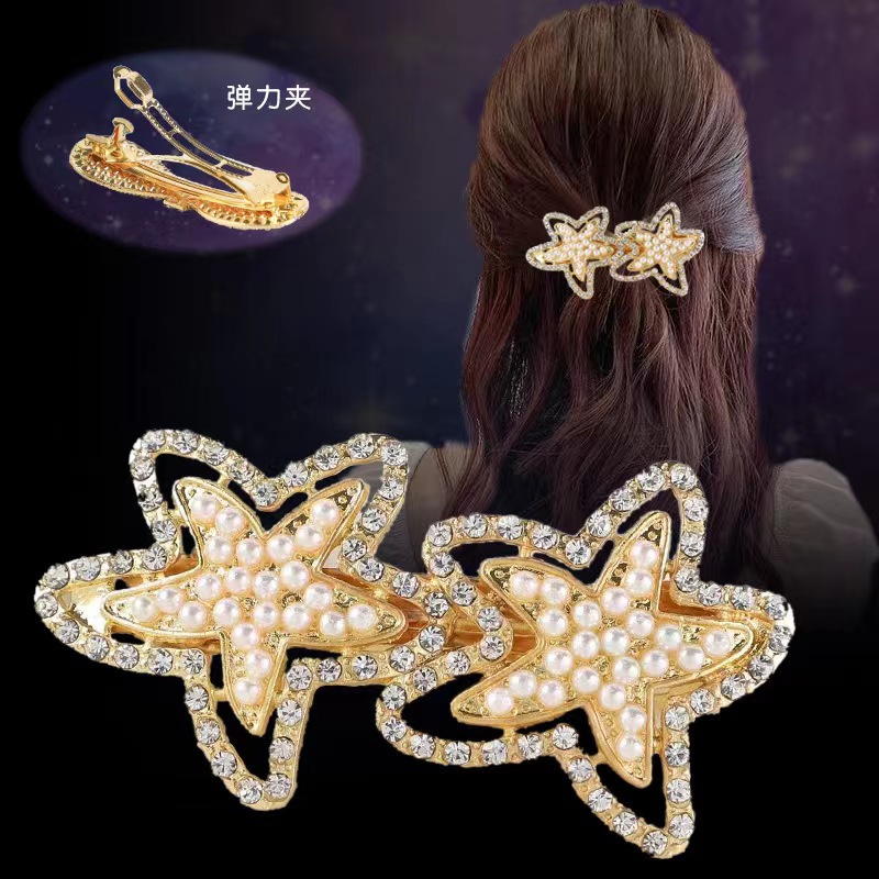 일본과 한국 스타일의 기하학적 스프링 클립, 워터드롭스톤 합금 중간 사이즈 클립, 달콤하고 귀여운 디자인, 속이 빈 탄성있는 머리핀, 반짝이는 스톤