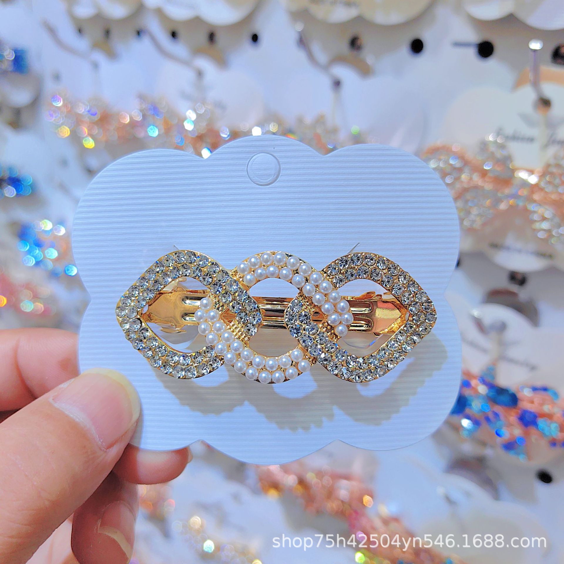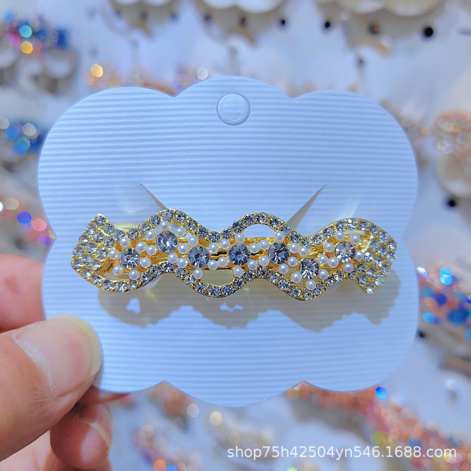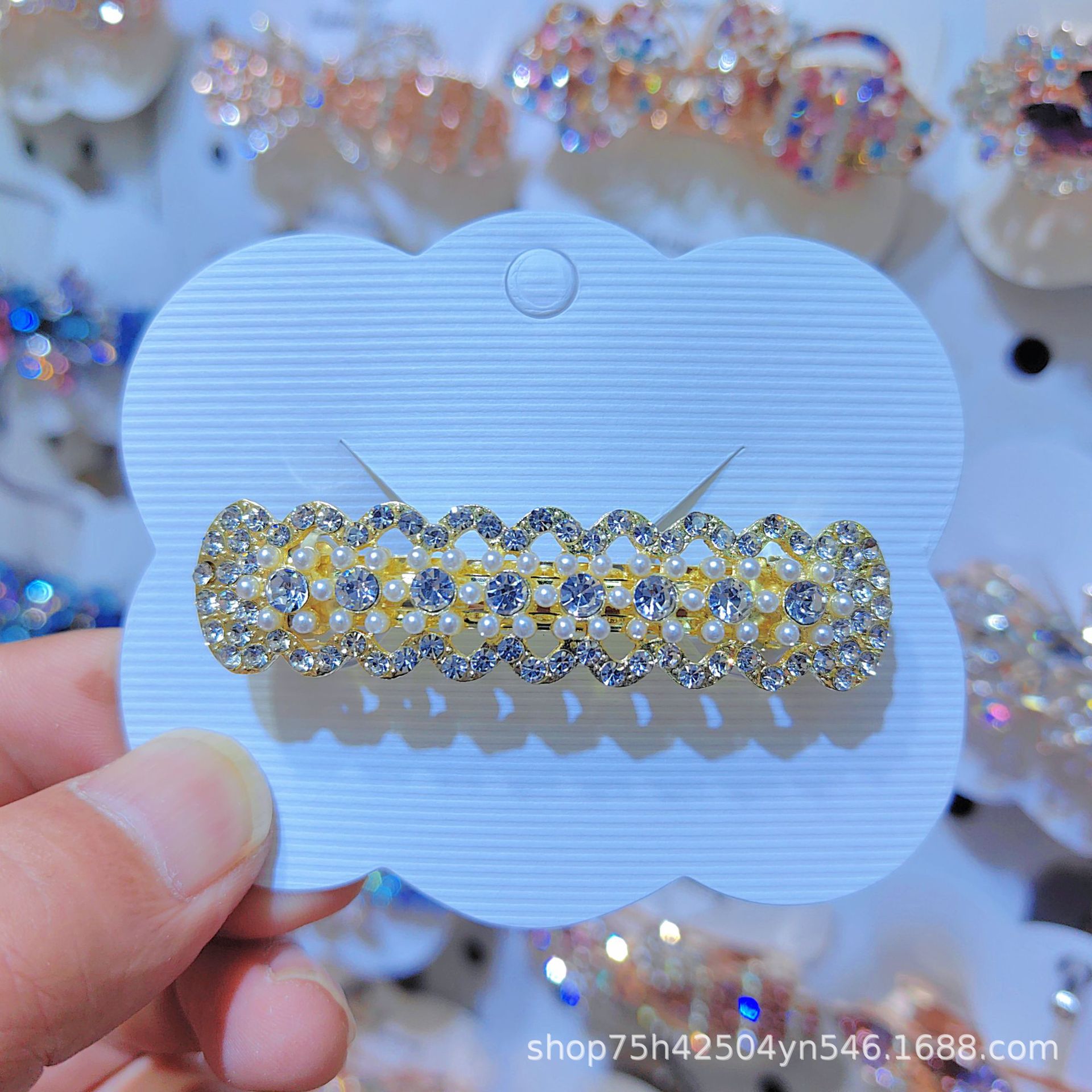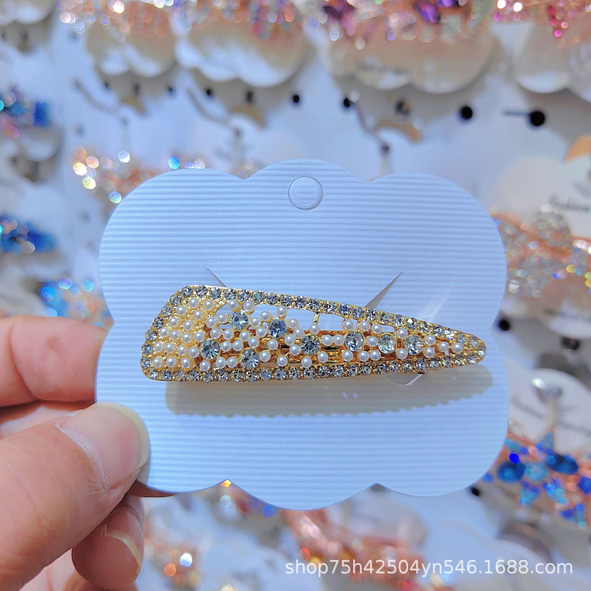 일본과 한국 스타일의 기하학적 스프링 클립, 워터드롭스톤 합금 중간 사이즈 클립, 달콤하고 귀여운 디자인, 속이 빈 탄성있는 머리핀, 반짝이는 스톤스토어 가기