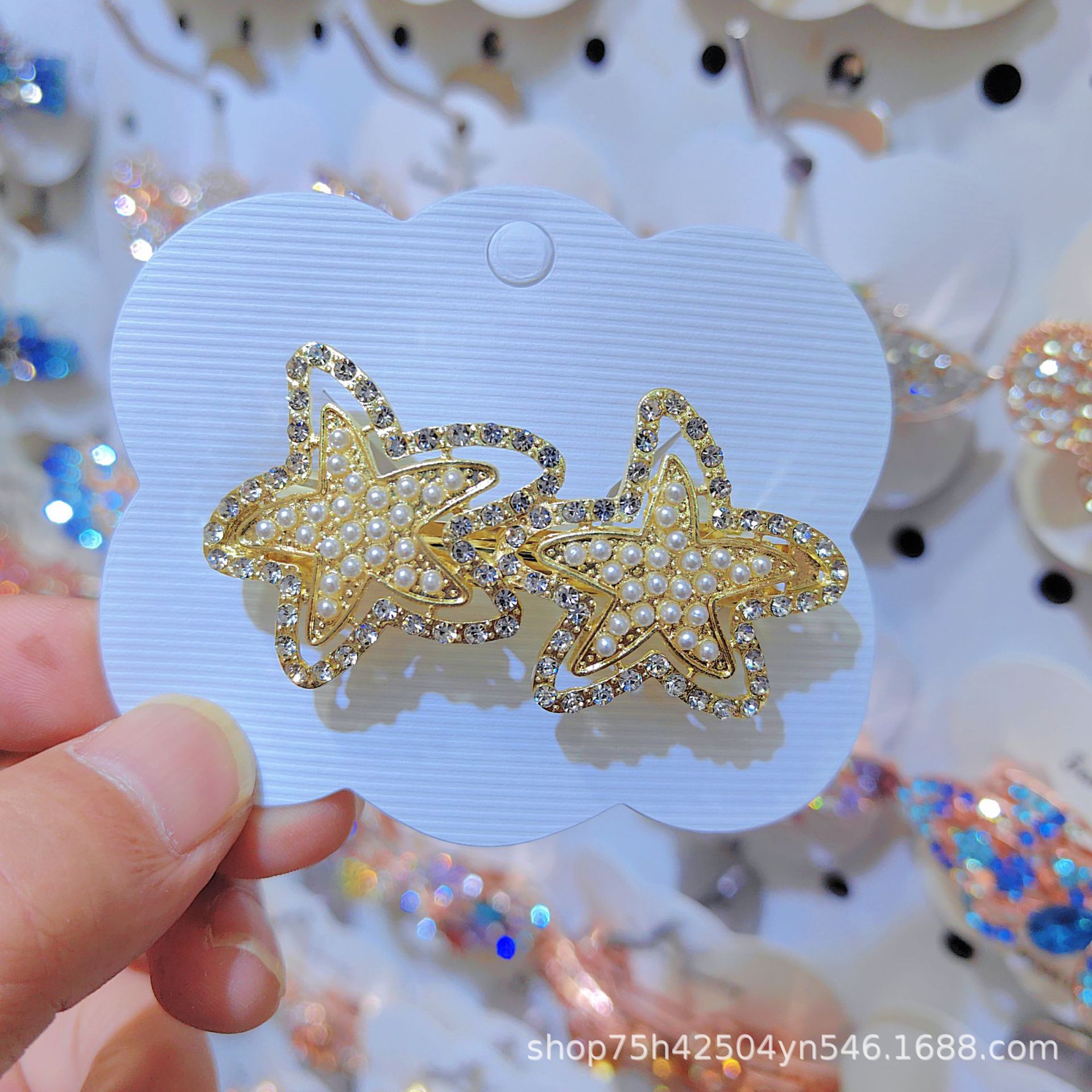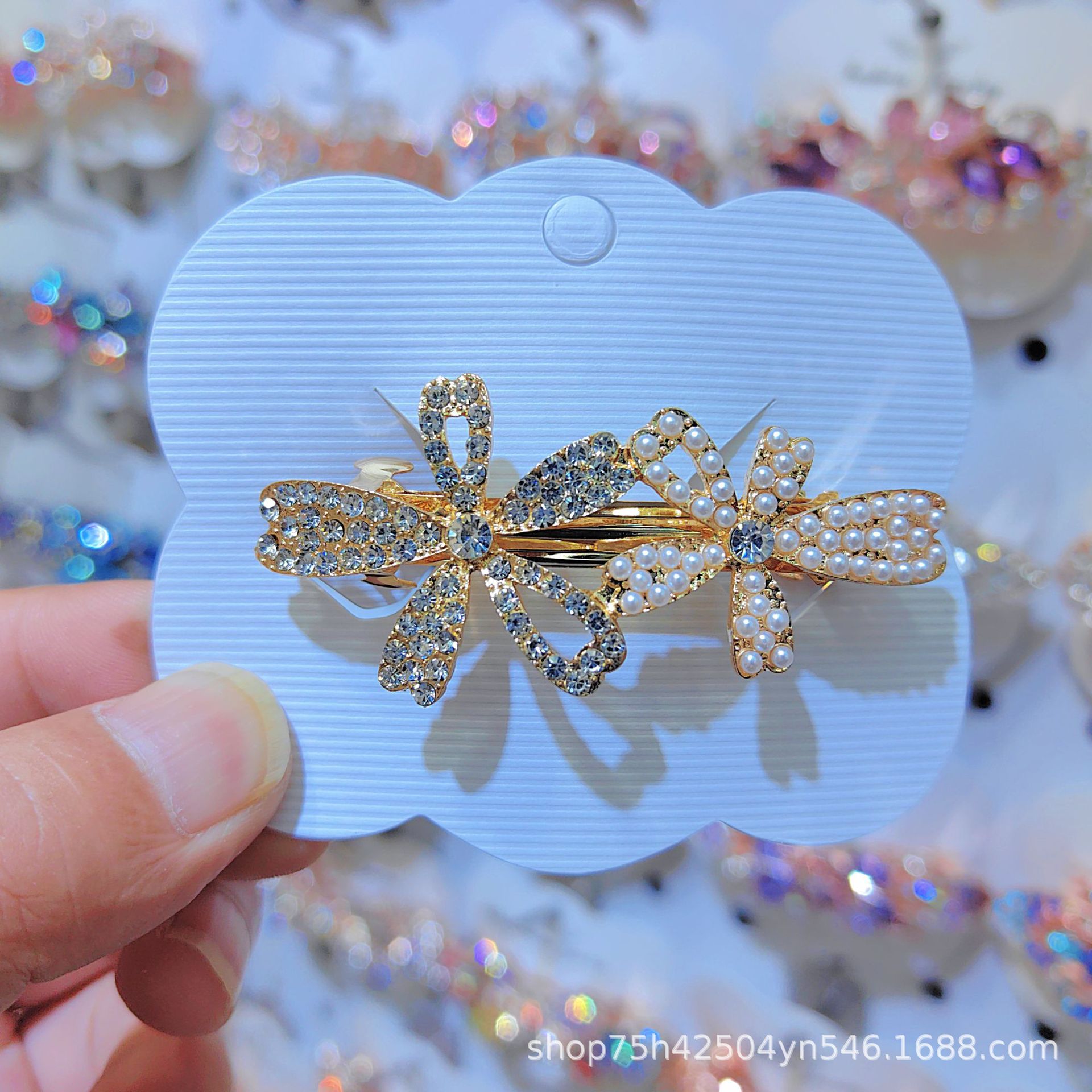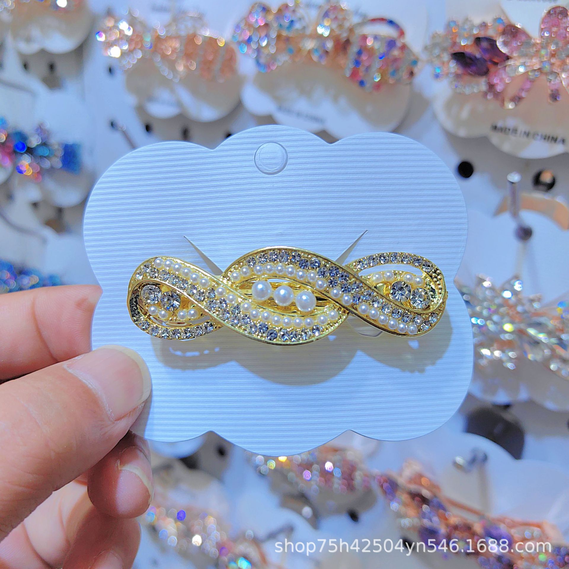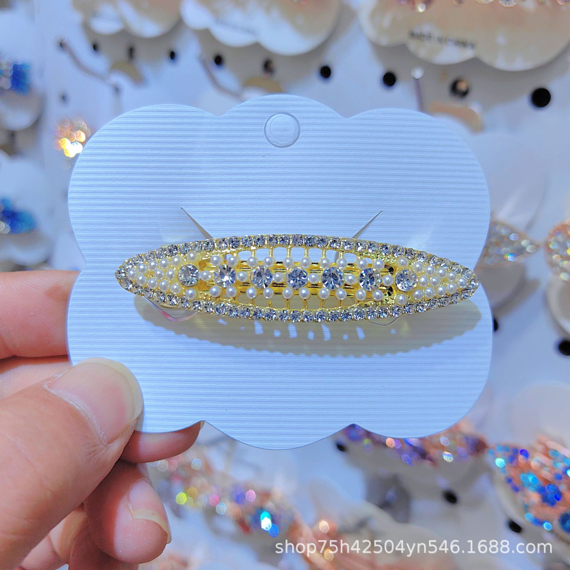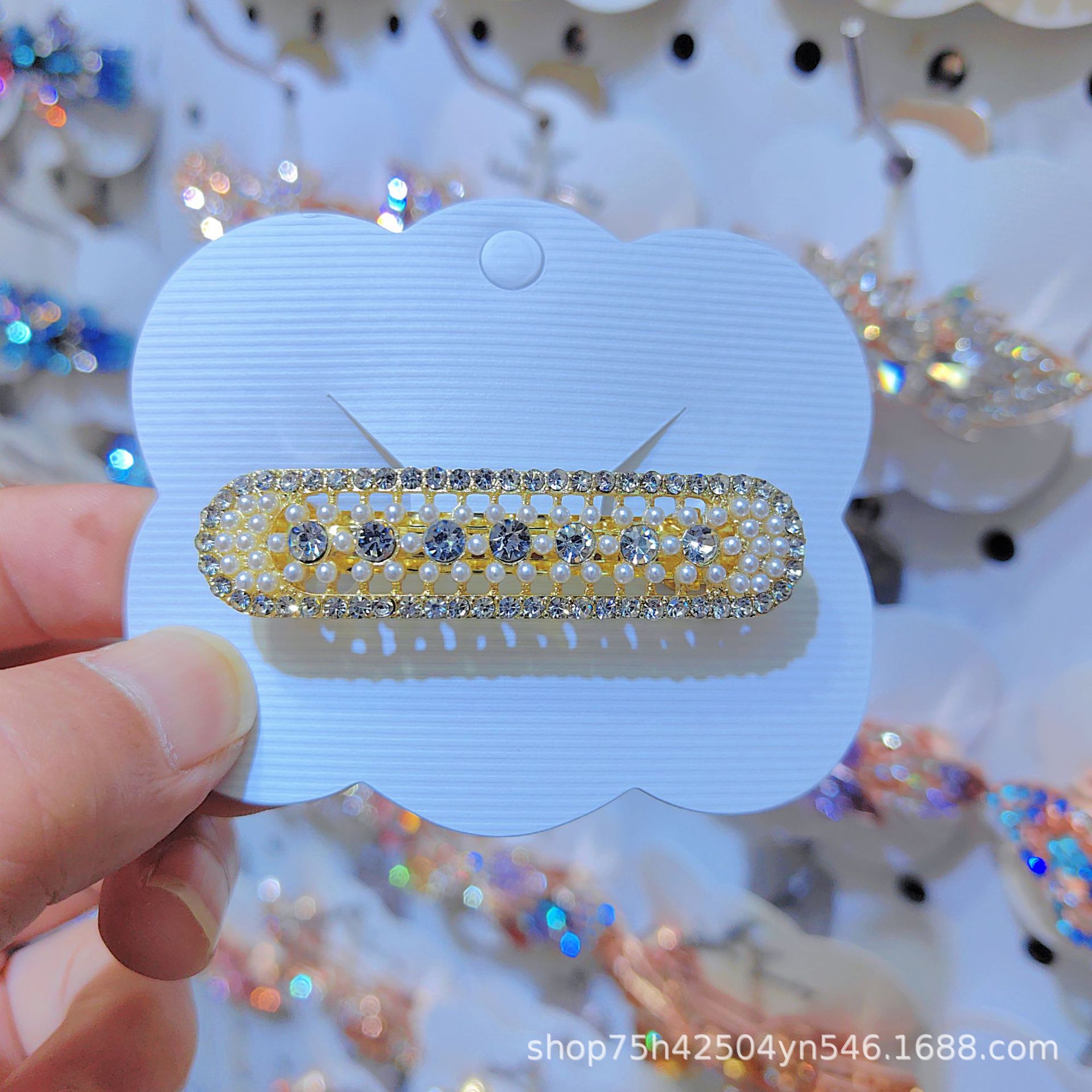 일본과 한국 스타일의 기하학적 스프링 클립, 워터드롭스톤 합금 중간 사이즈 클립, 달콤하고 귀여운 디자인, 속이 빈 탄성있는 머리핀, 반짝이는 스톤스토어 가기