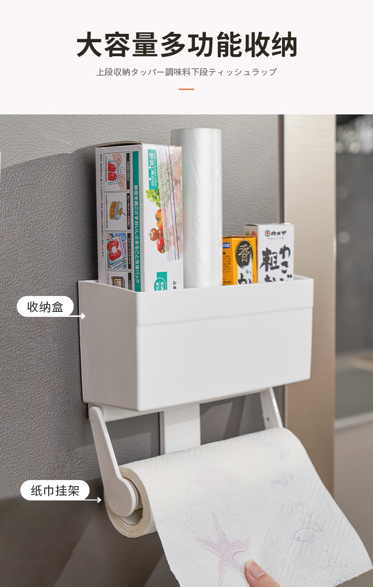 KM 1225 냉장고 마그네틱 스토리지 랙 롤 종이 스토리지 랙 다기능 선반 플라스틱 랩 티슈 랙 펀치 프리