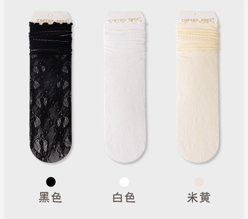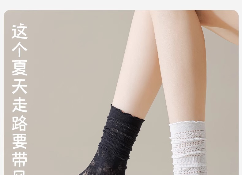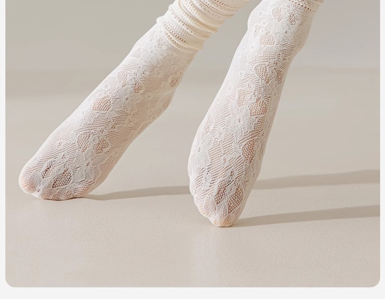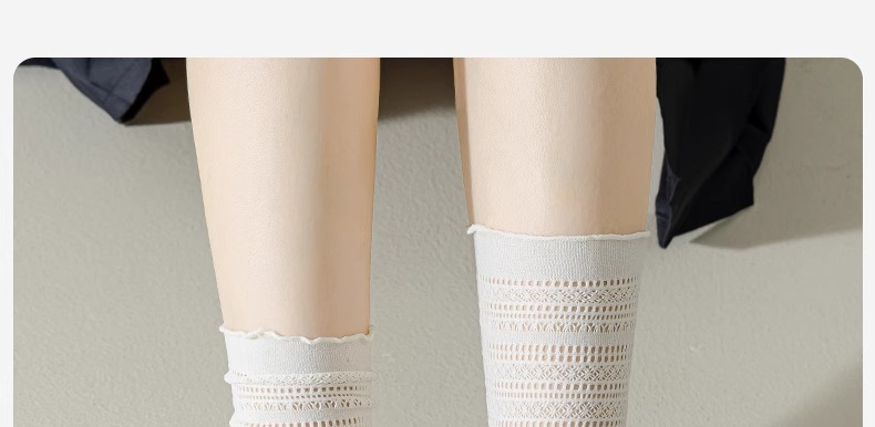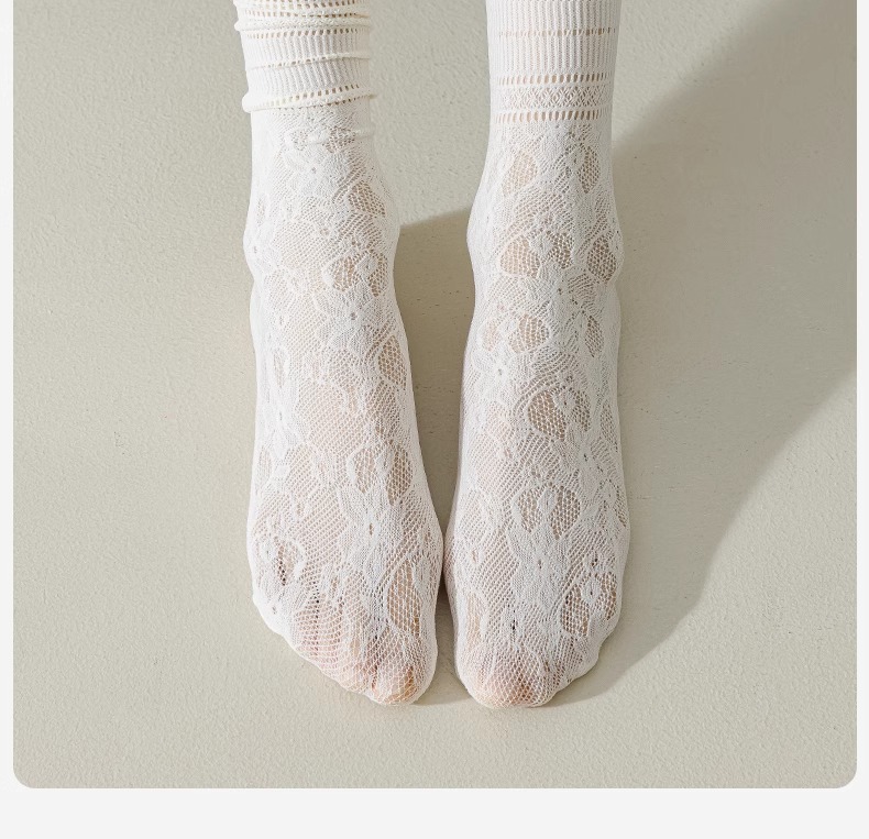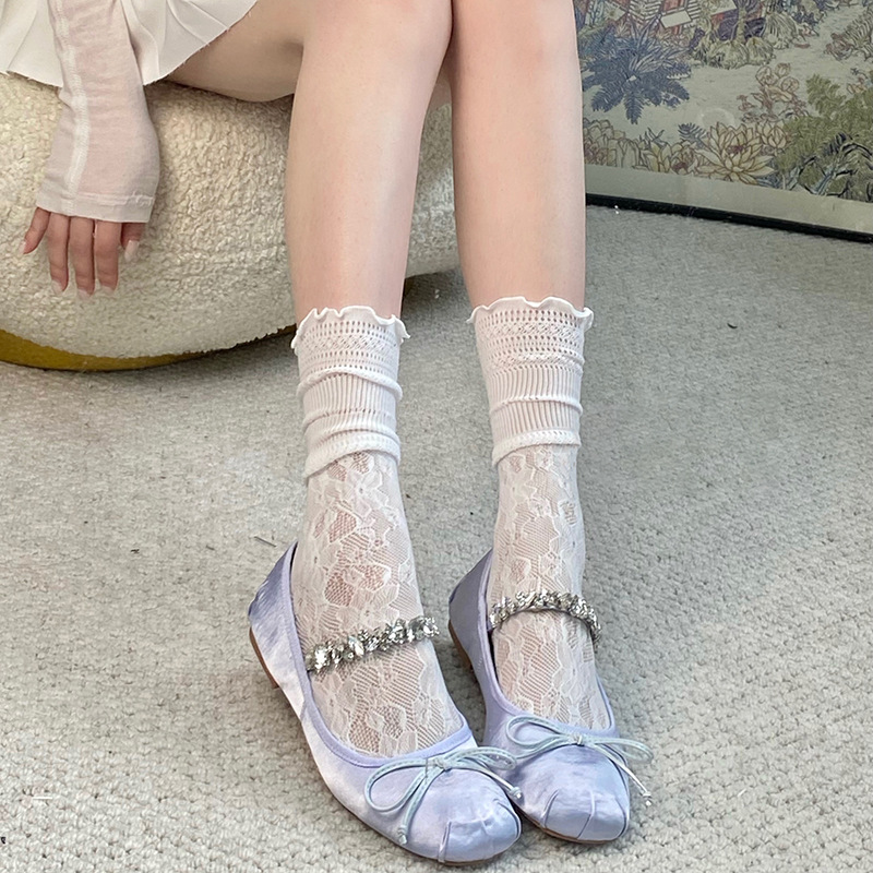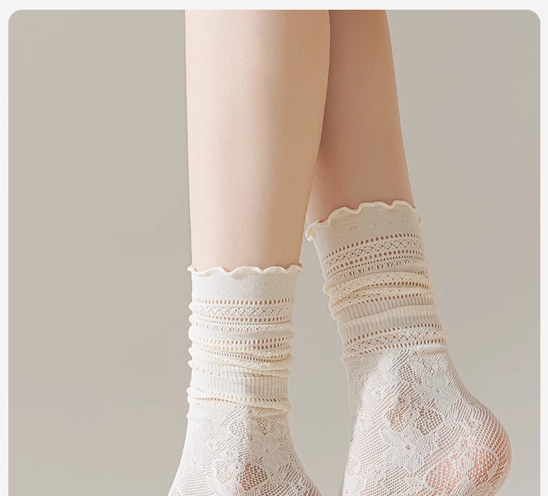 심플한 우드 이어 중공 레이스 파일 양말 여성용 얇은 순수 통기성 메쉬 양말 유행 학술 스타일스토어 가기