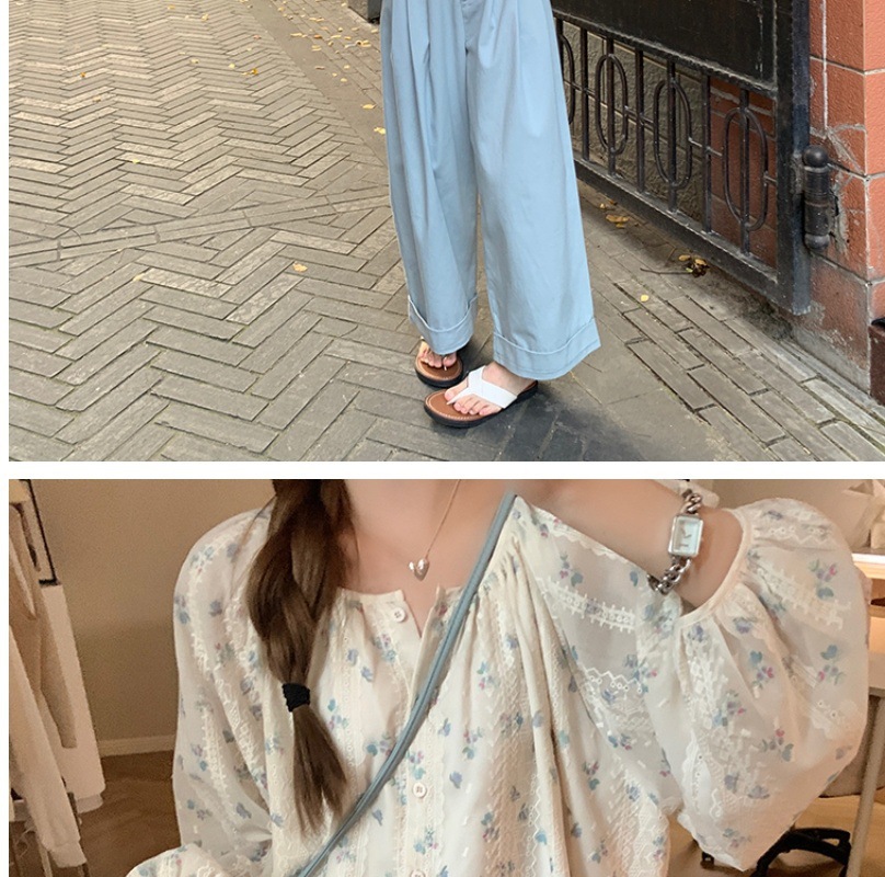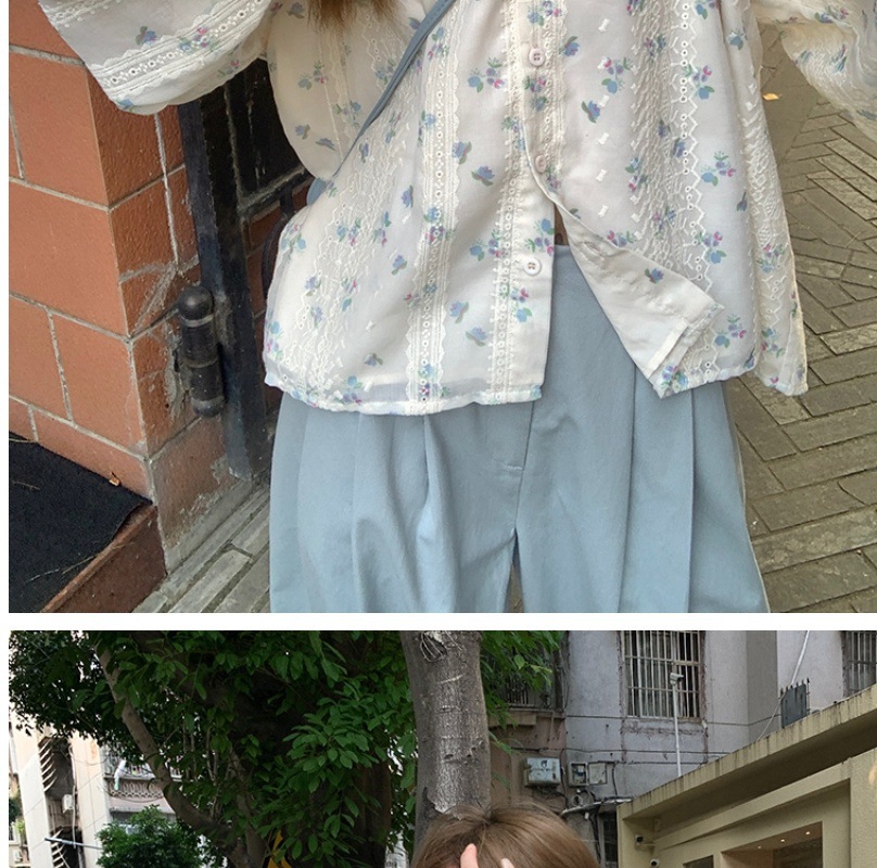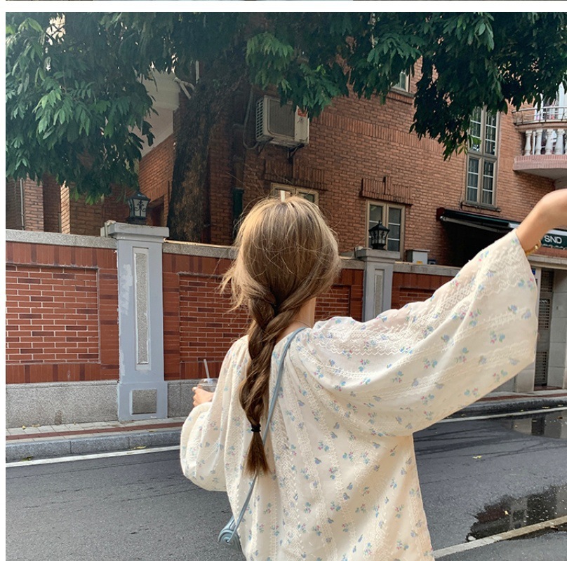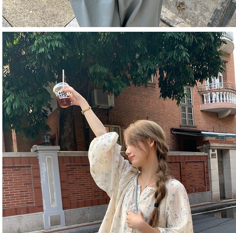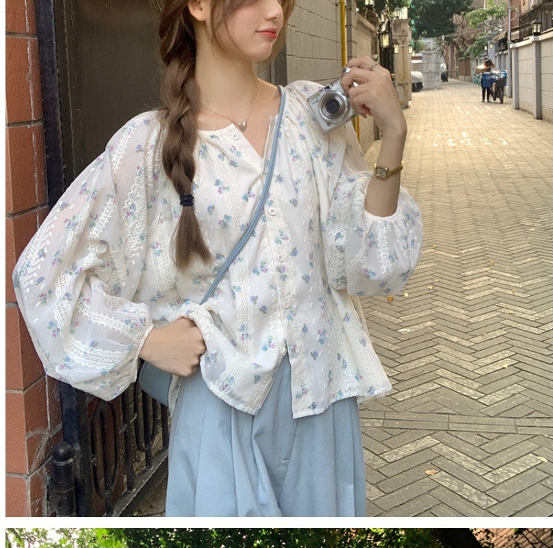 신선한 스타일 꽃 긴팔 셔츠 스몰 사이즈 느슨한 슬리밍 라운드 넥 달콤한 가리 스타일 올 매치 쉬폰 셔츠스토어 가기