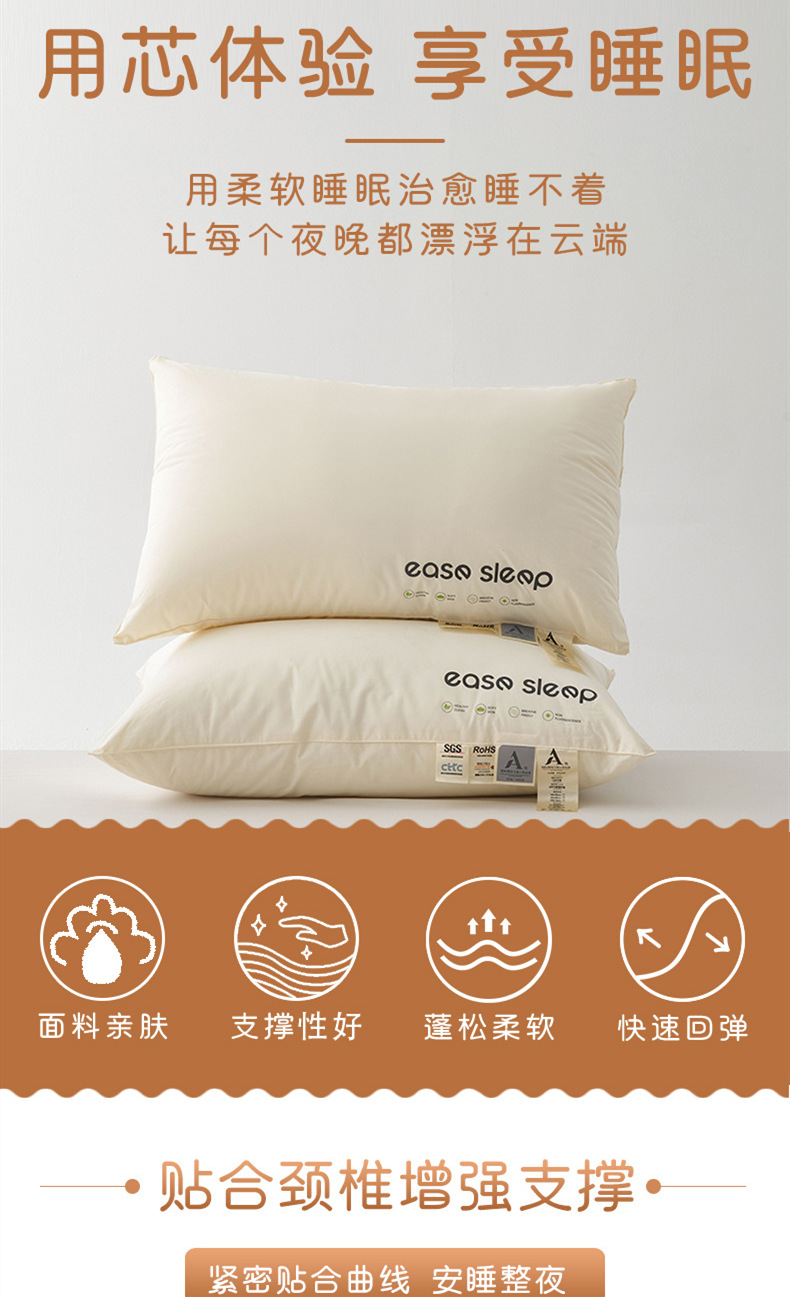 60수 순면 베개 A급 산모 및 유아용 호텔용 싱글 목베개 순면 호텔용 수출용 베개 코어 선물 도매