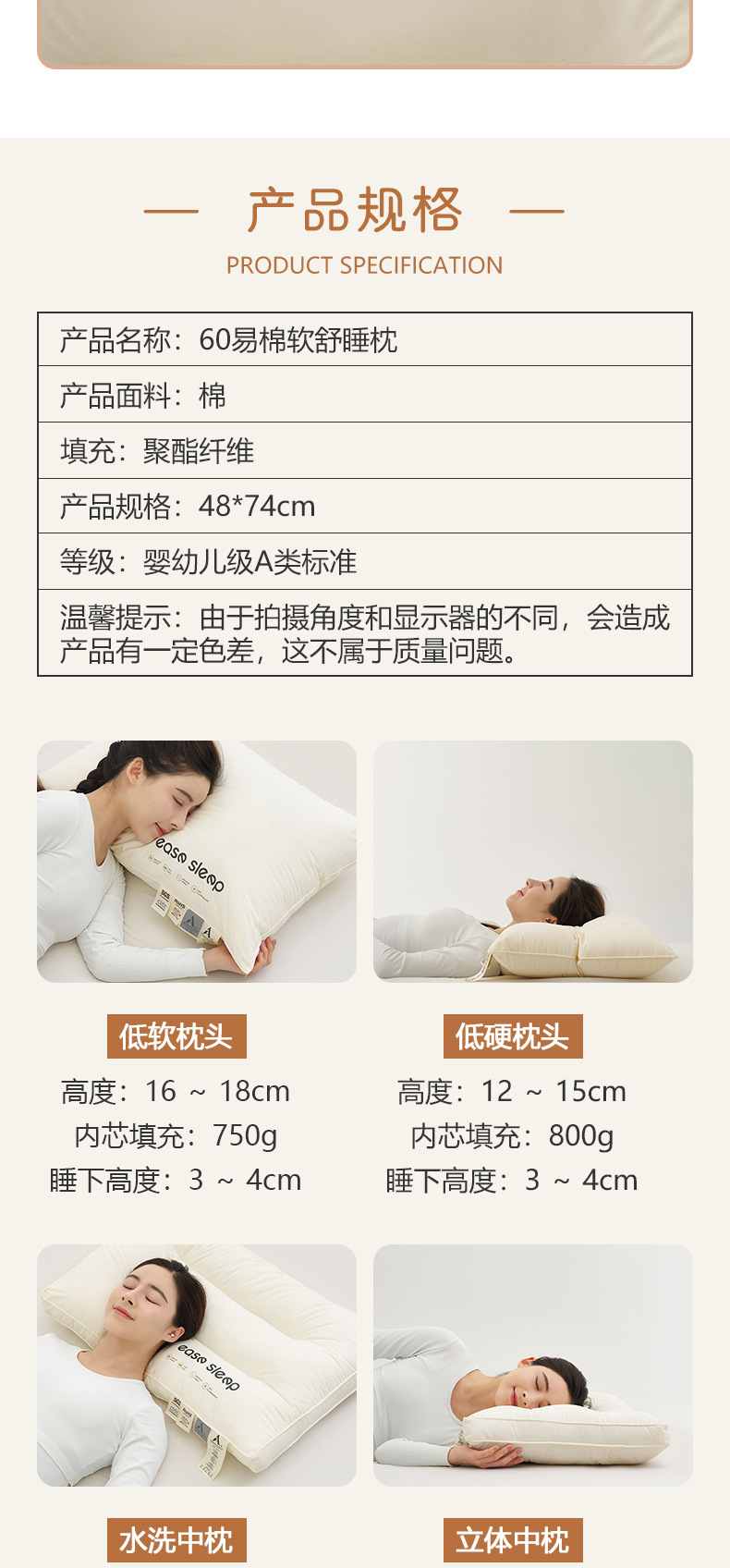 60수 순면 베개 A급 산모 및 유아용 호텔용 싱글 목베개 순면 호텔용 수출용 베개 코어 선물 도매스토어 가기
