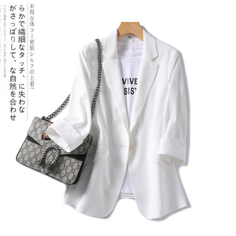 2023 새로운 봄과 여름 얇은 작은 세트 재킷 여자의 7 점 소매 여름 새로운 우아한 슬림 핏 세트 최고 여성