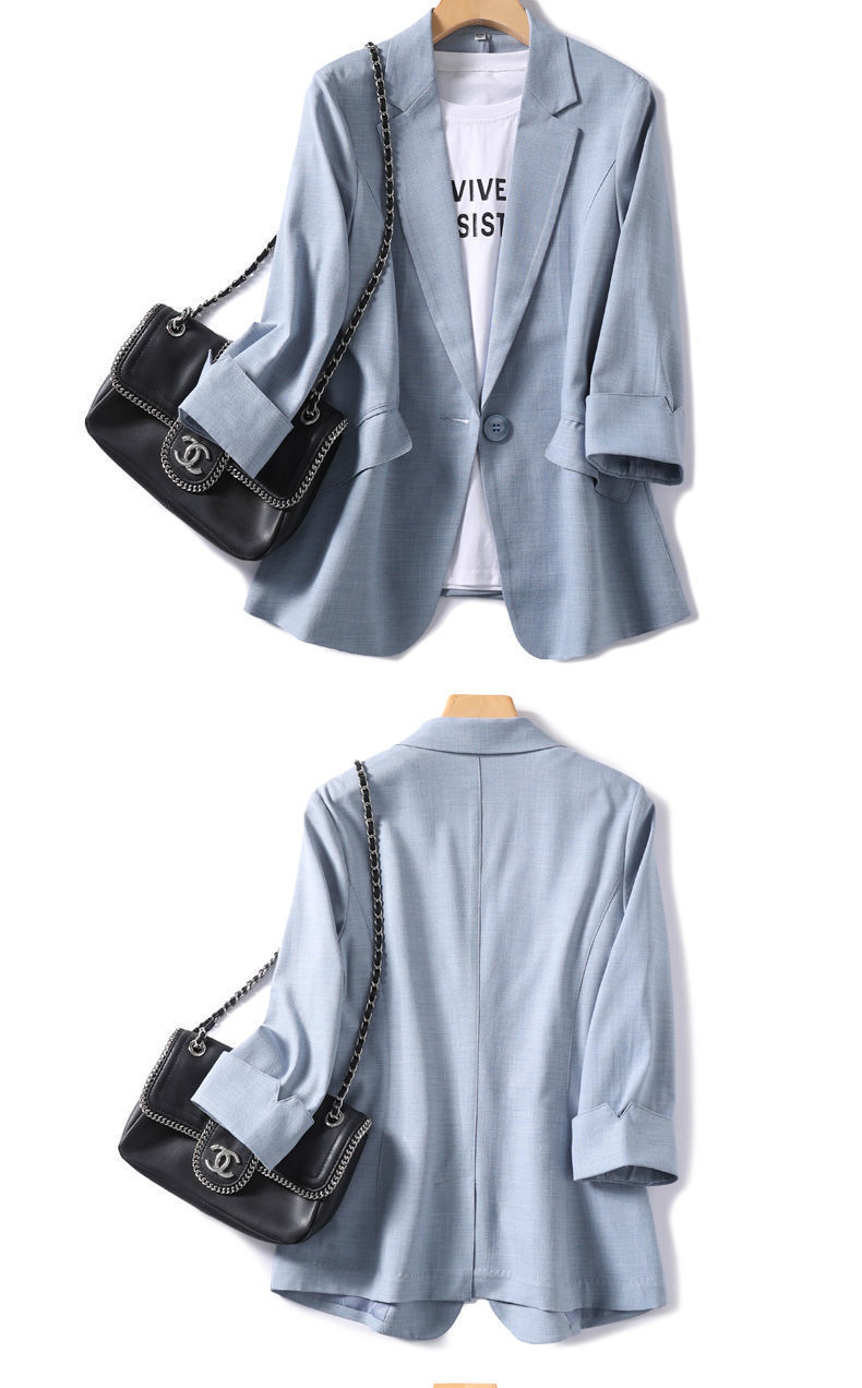 2023 새로운 봄과 여름 얇은 작은 세트 재킷 여자의 7 점 소매 여름 새로운 우아한 슬림 핏 세트 최고 여성스토어 가기