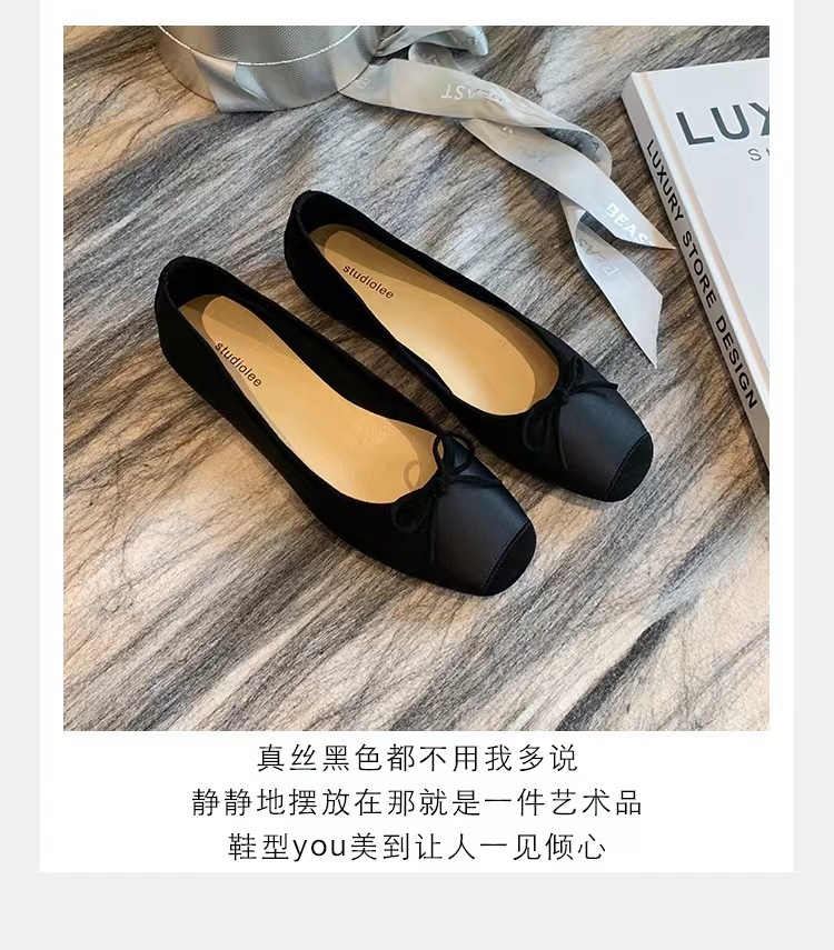 재고 포도 엄마 같은 스타일 라운드 머리 얕은 입 활 발 작은 플랫 발레 신발 실크 양가죽 신발 여성스토어 가기