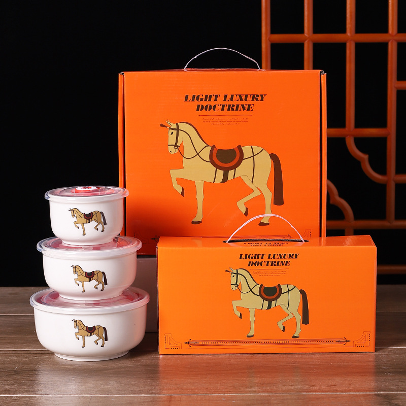 세 가지 절묘하고 실용적인 오프닝 활동 매장 축하 선물 비즈니스 프로모션 선물 세트 세라믹 신선한 보관 그릇 선물
