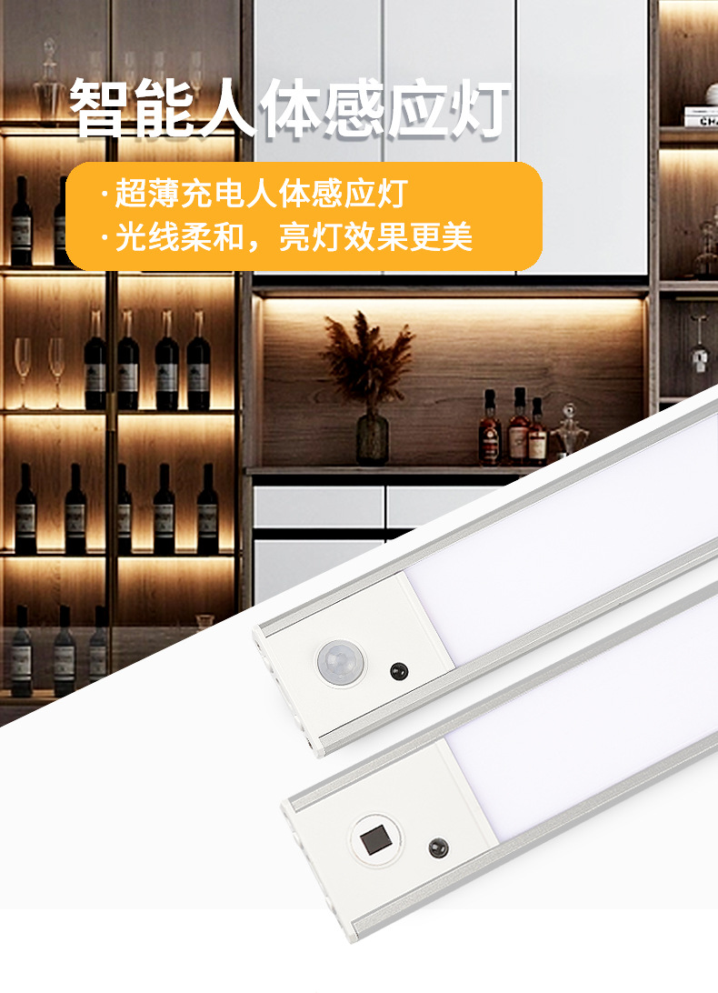 울트라 얇은 원격 제어 지능형 led 인체 유도 야간 조명 캐비닛 옷장 와인 캐비닛 분위기 조명 충전 블랙스토어 가기