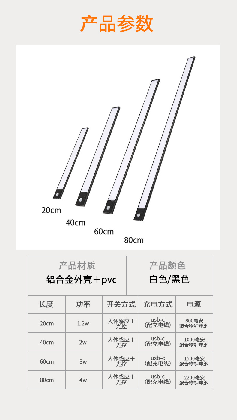 울트라 얇은 원격 제어 지능형 led 인체 유도 야간 조명 캐비닛 옷장 와인 캐비닛 분위기 조명 충전 블랙