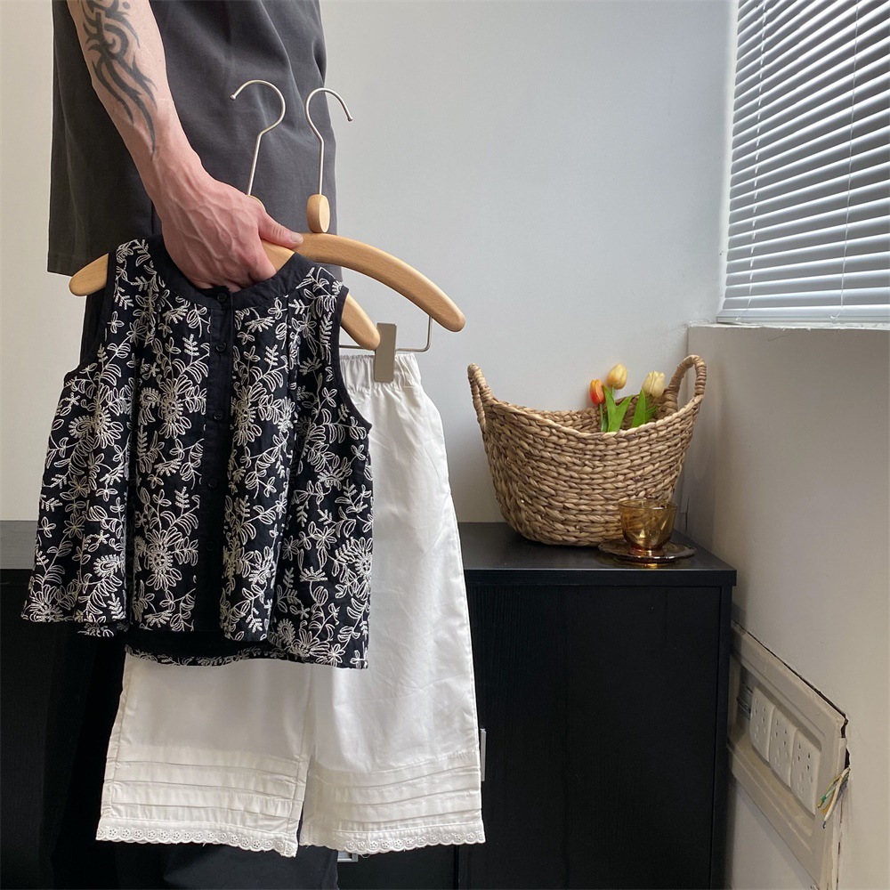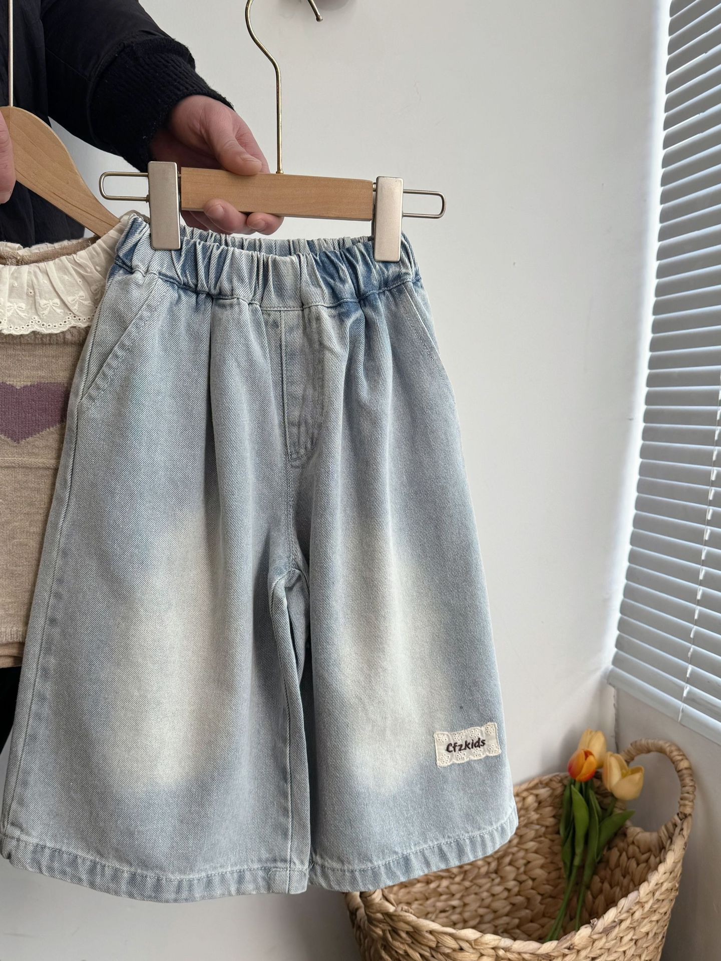 2026년 여름 여아 9부 와이드 팬츠 한국 스타일 아동복 여아 스트레이트 팬츠 화이트 레이스 모기 방지 팬츠스토어 가기
