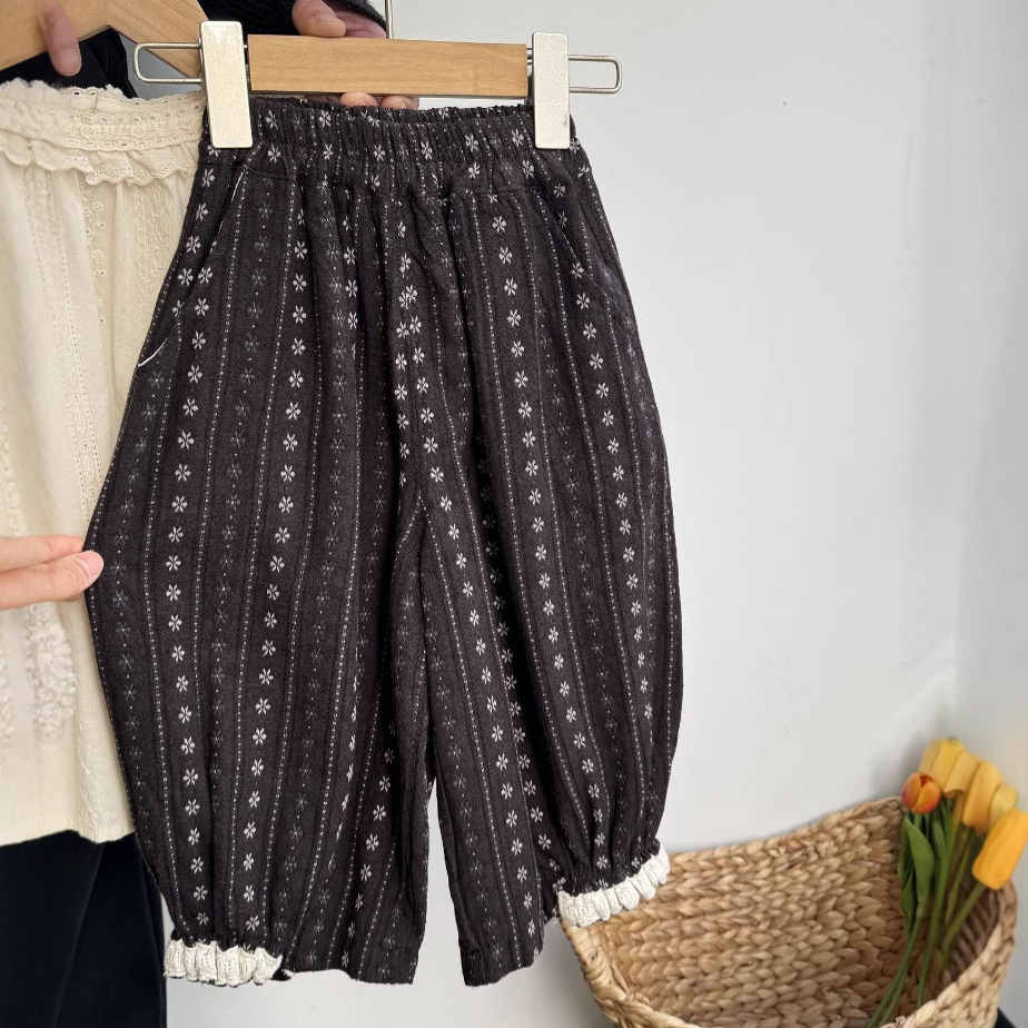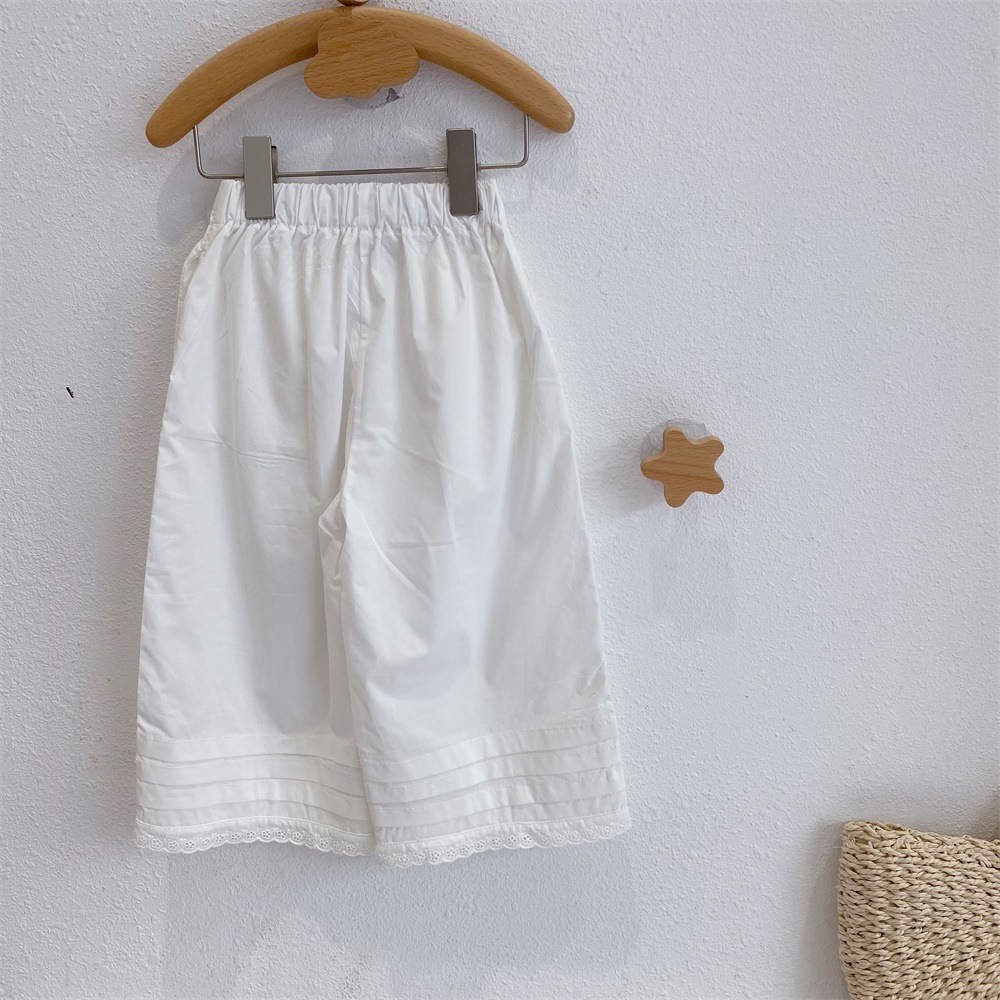 2026년 여름 여아 9부 와이드 팬츠 한국 스타일 아동복 여아 스트레이트 팬츠 화이트 레이스 모기 방지 팬츠