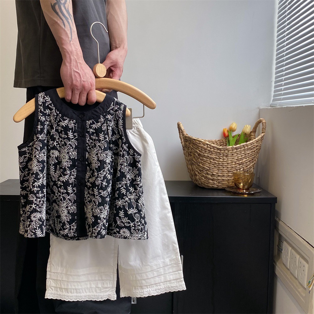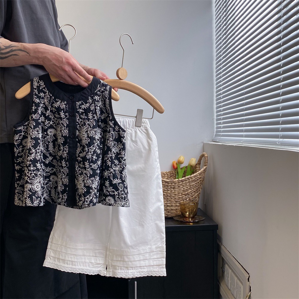女童套装精棉花边立领上衣阔腿裤2026夏装新款无袖花边两件套童装