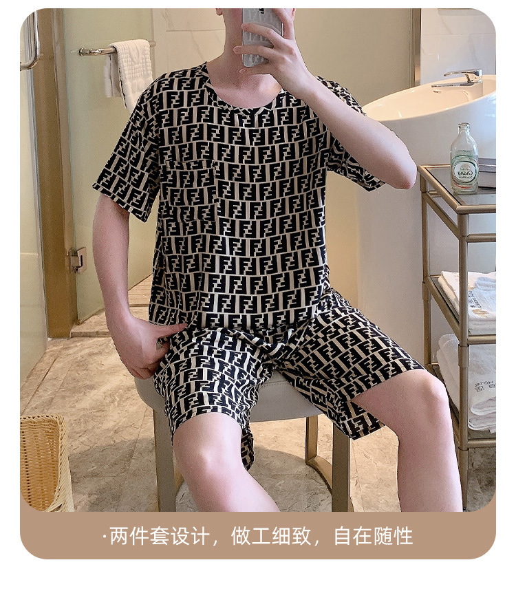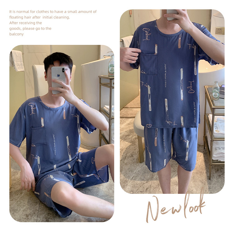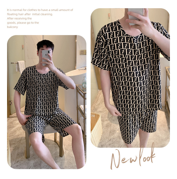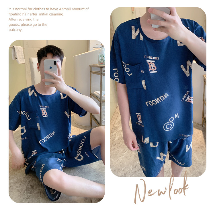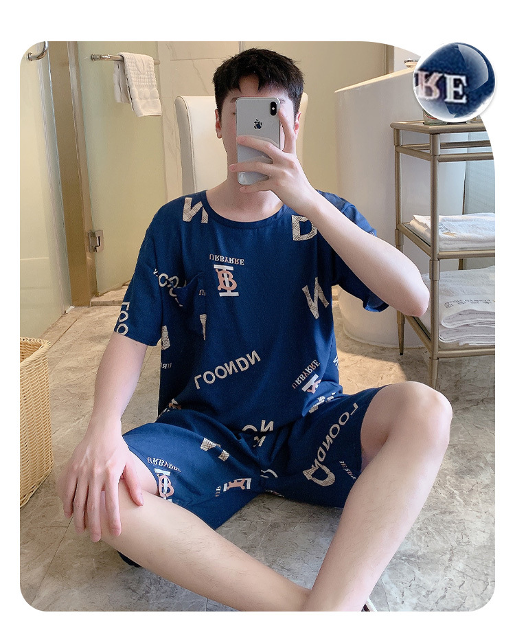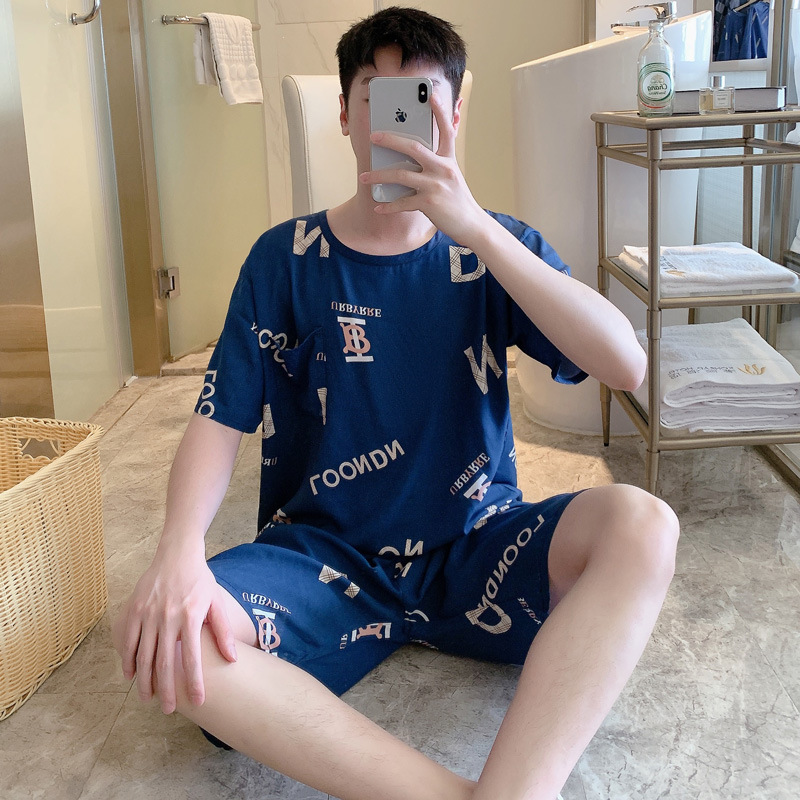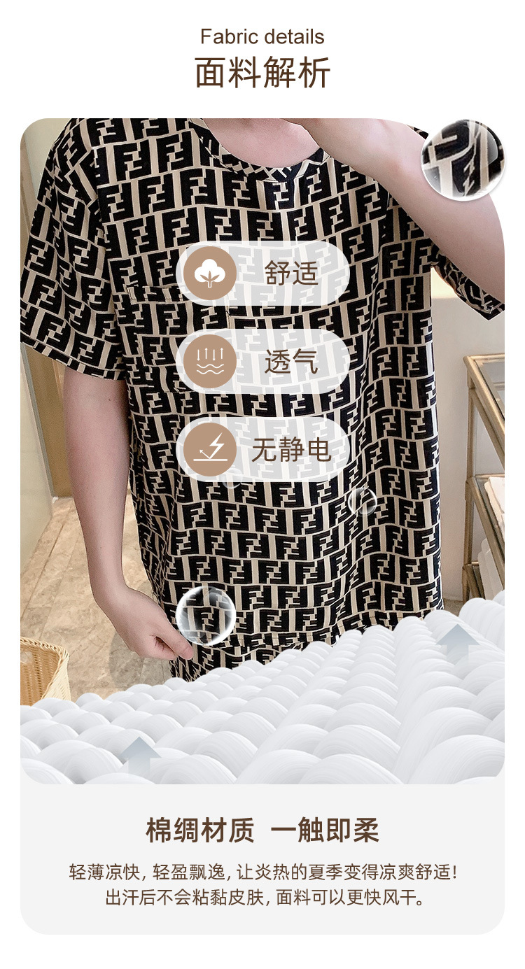 남성용 면 실크 잠옷 2025 새로운 면 실크 정장 반팔 여름 얇은 대형 격자 무늬 가정 의류 남성 스타일스토어 가기