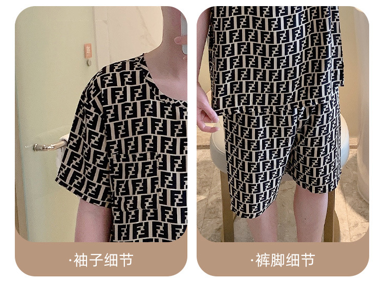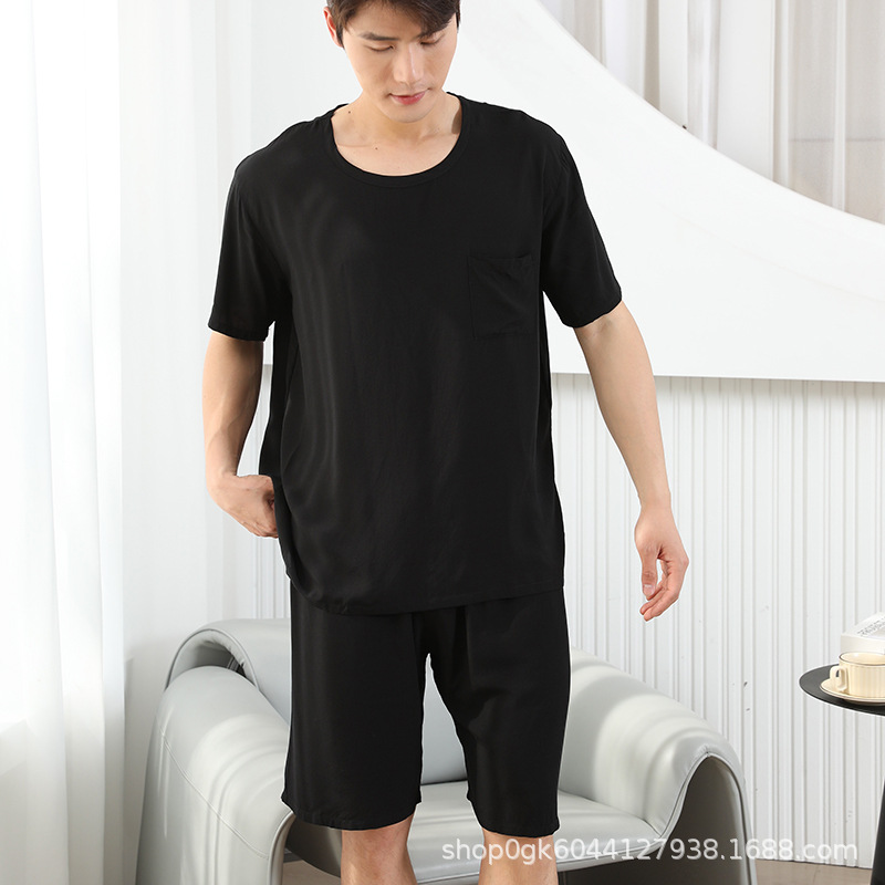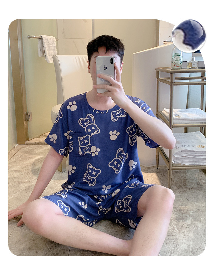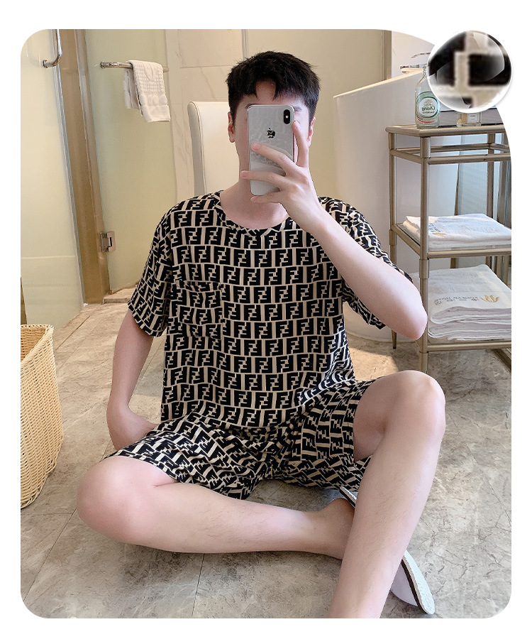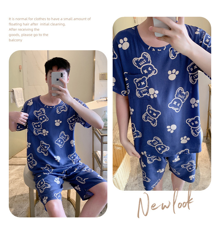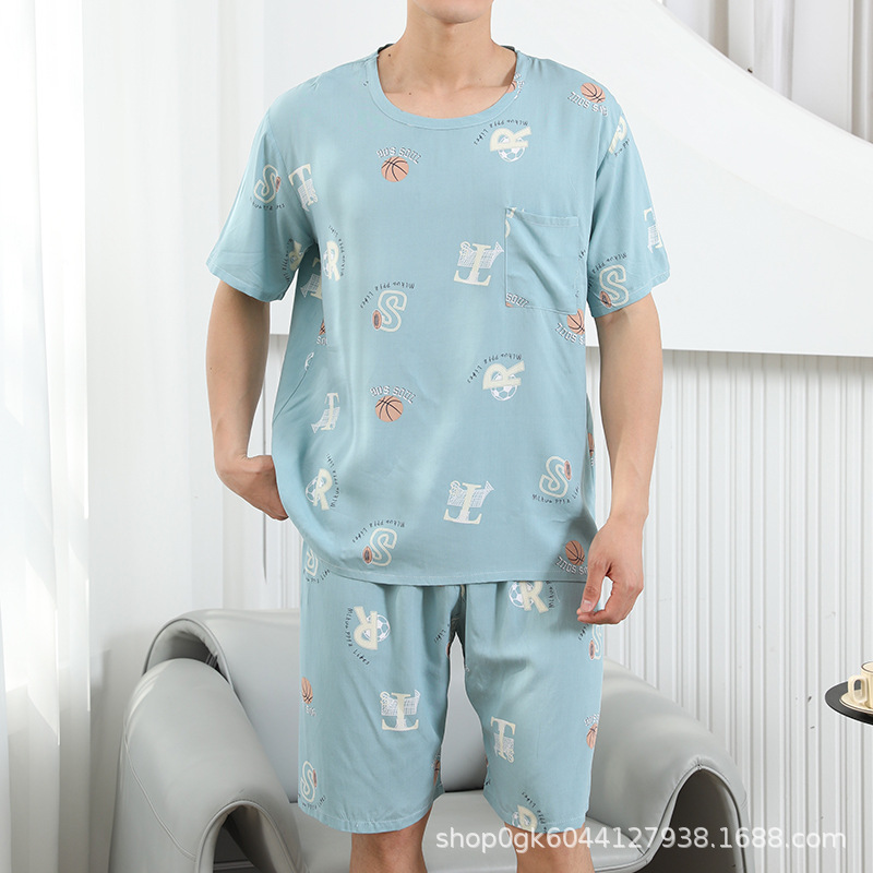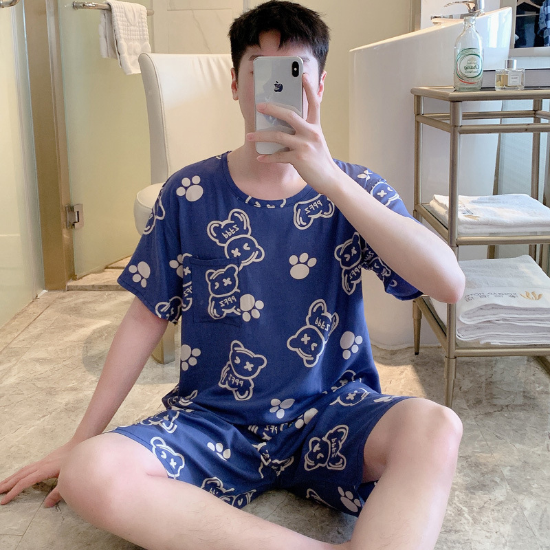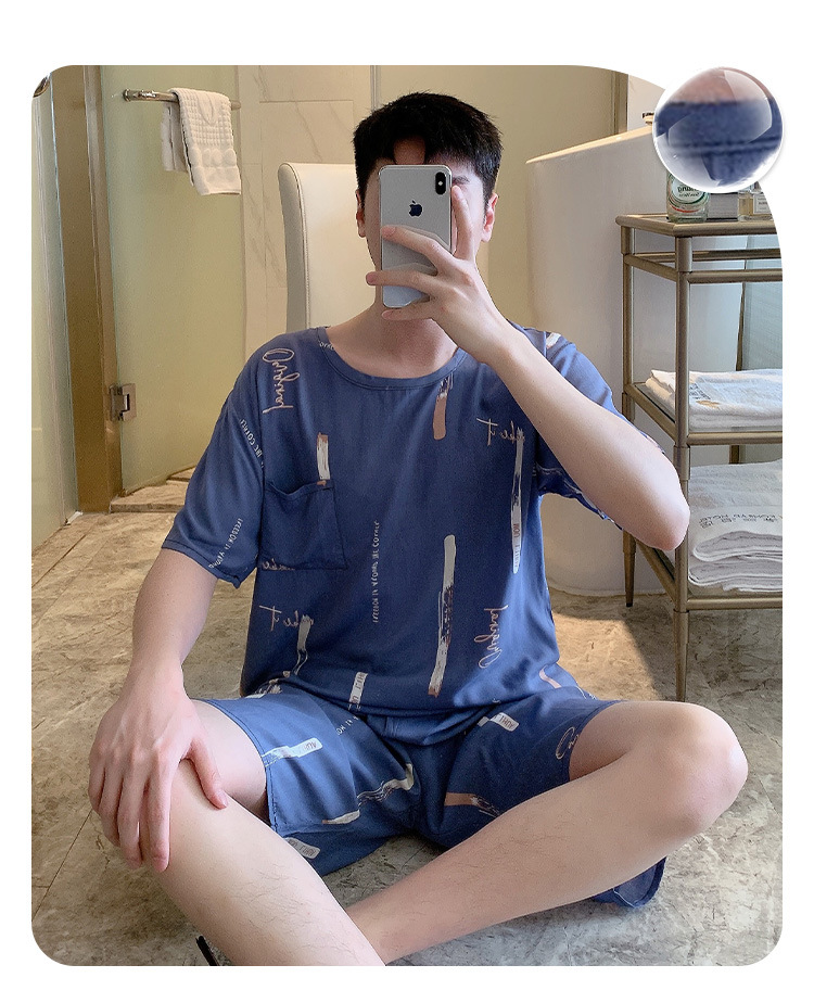 남성용 면 실크 잠옷 2025 새로운 면 실크 정장 반팔 여름 얇은 대형 격자 무늬 가정 의류 남성 스타일스토어 가기