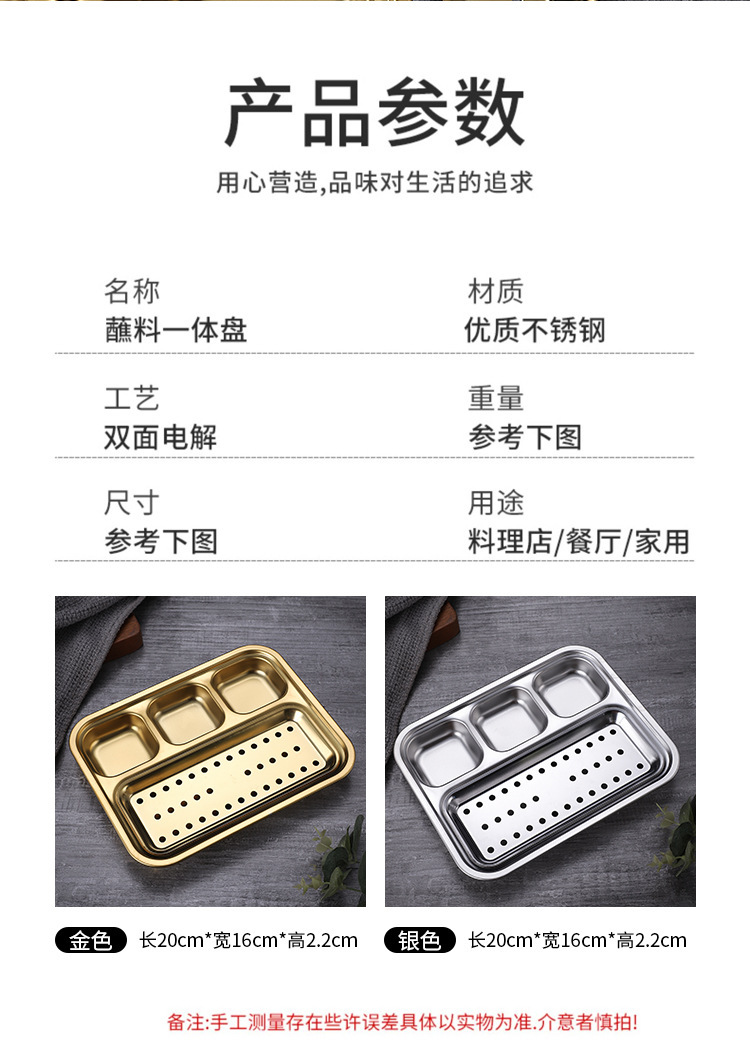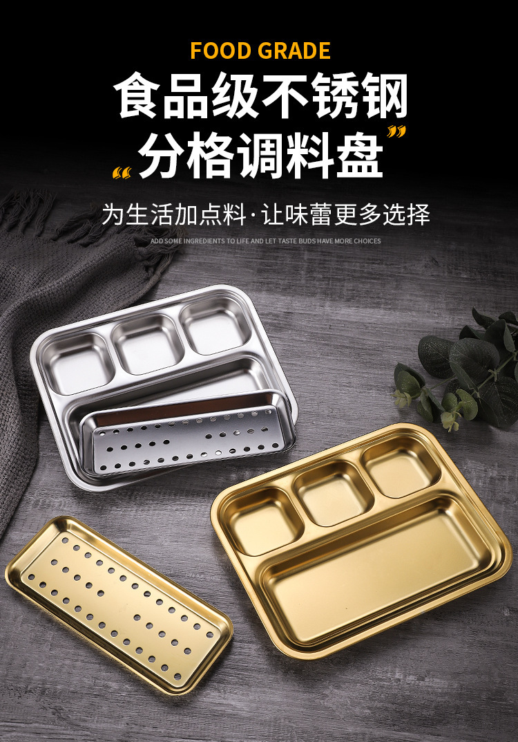 스테인레스 스틸 바베큐 딥 원피스 플레이트 한국식 바베큐 분할 조미료 소스 플레이트 바베큐 숍 식기