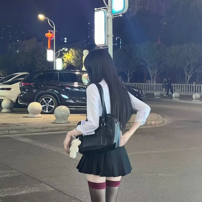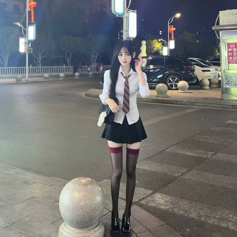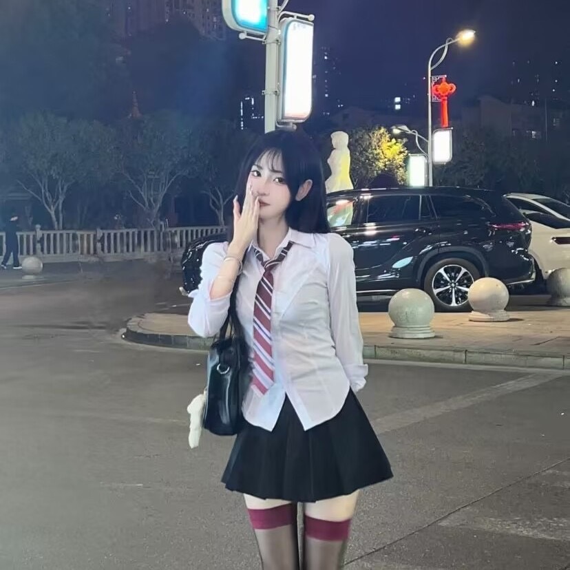 • 긴팔 셔츠 + 검은색 스커트 + 빨간색 줄무늬 넥타이 1