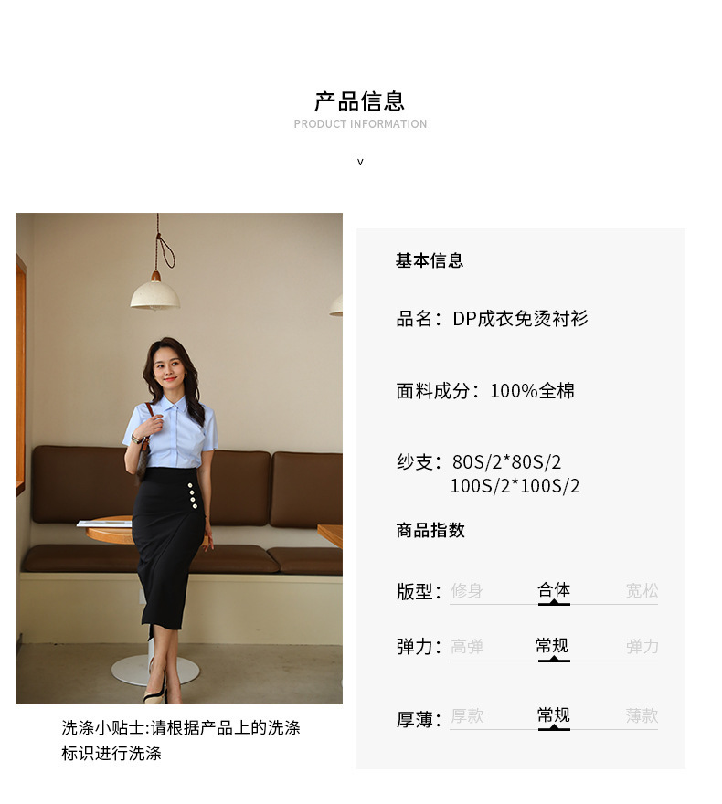 여성용 반팔 DP 레디메이드 의류 다리미가없는 셔츠 주름 방지 비즈니스 캐주얼 슬림핏 셔츠 여성용 여름 프로페셔널 화이트 셔츠스토어 가기