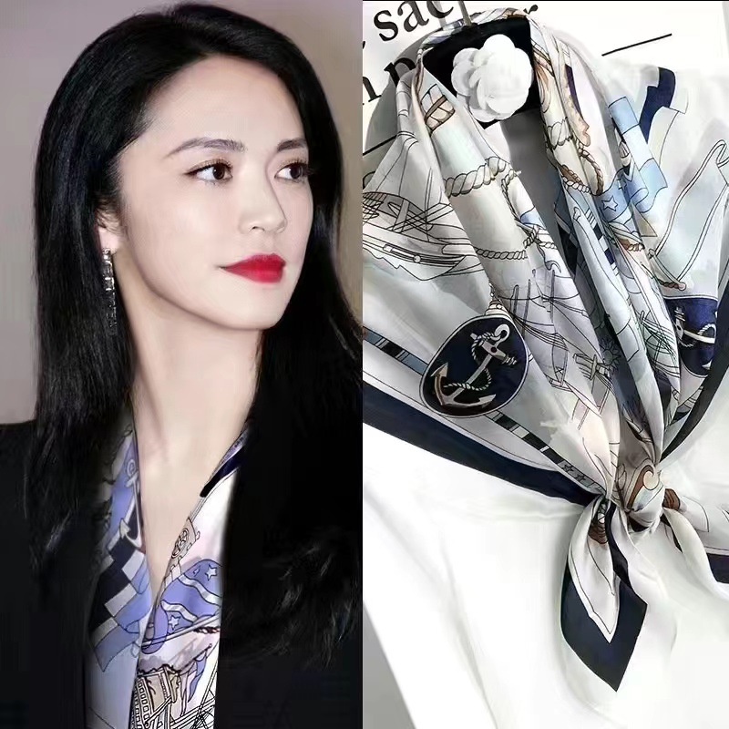 항저우 실크 실크 스카프 여성용 대형 스퀘어 스카프 중년 및 노인 어머니를위한 봄과 가을 다용도 스카프 숄 스카프스토어 가기