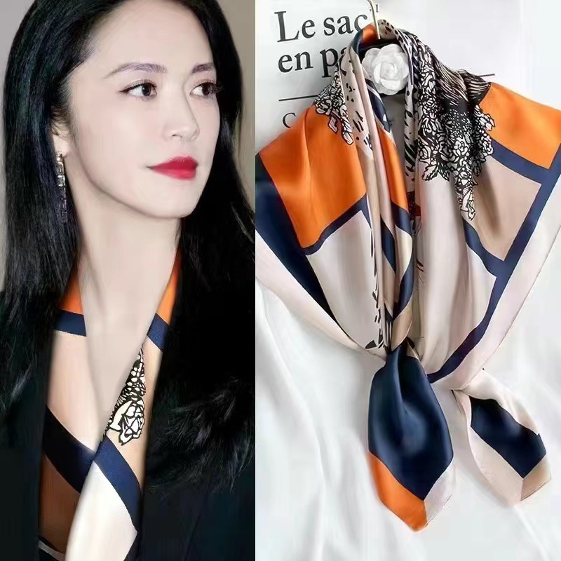 항저우 실크 실크 스카프 여성용 대형 스퀘어 스카프 중년 및 노인 어머니를위한 봄과 가을 다용도 스카프 숄 스카프