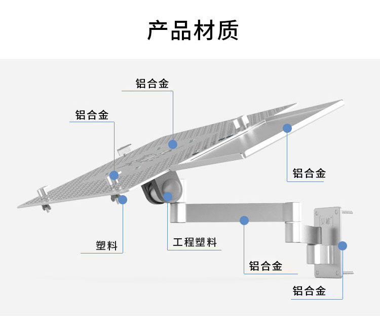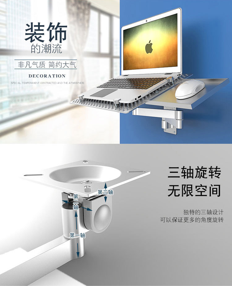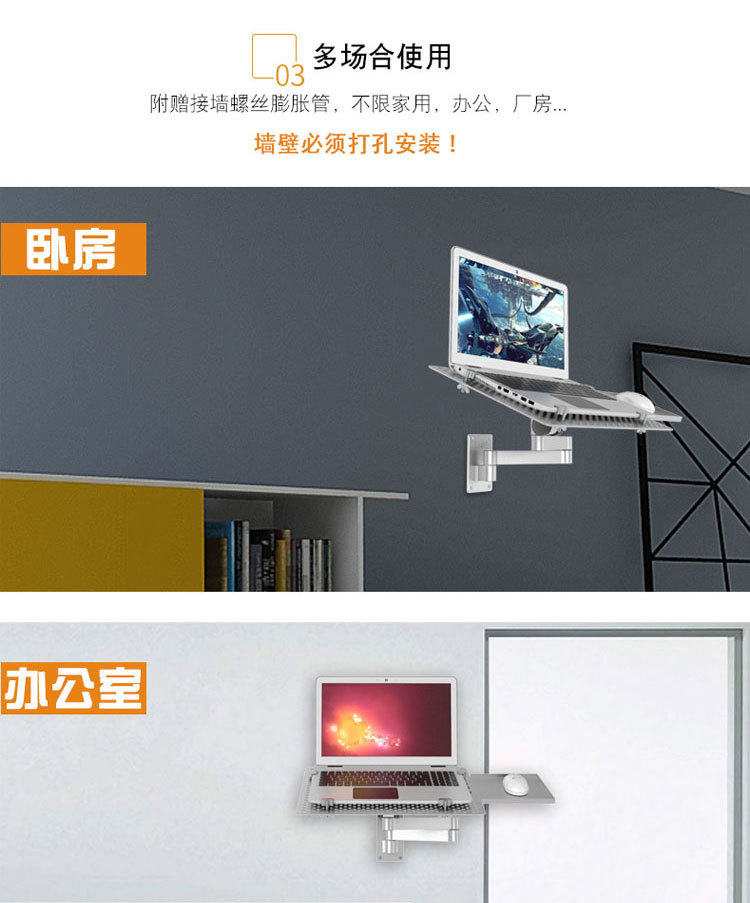 컴퓨터 랙을 지원하는 텔레스코픽 회전 산업용 장비 마우스 홀더가 있는 다기능 벽걸이 노트북 브래킷 암스토어 가기