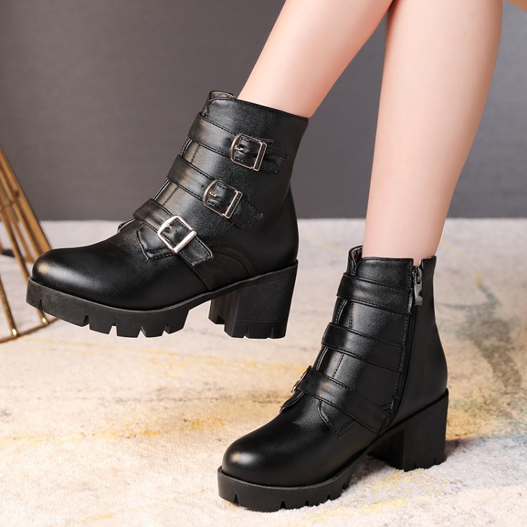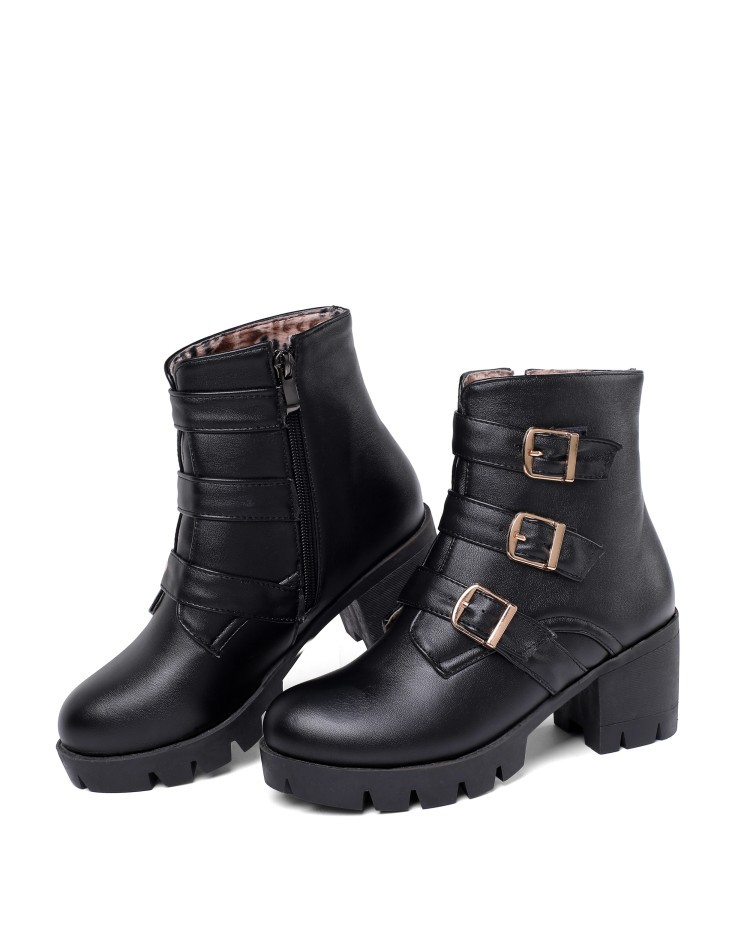 가을과 겨울 새로운 패션 하이힐 부츠 여성용 두꺼운 뒤꿈치 방수 테이블 해외 무역 40-46 플러스 사이즈 낮은 튜브 여성 신발스토어 가기