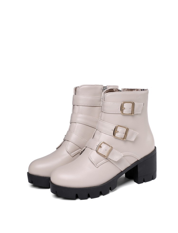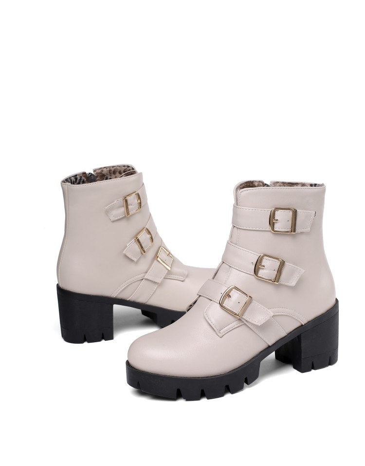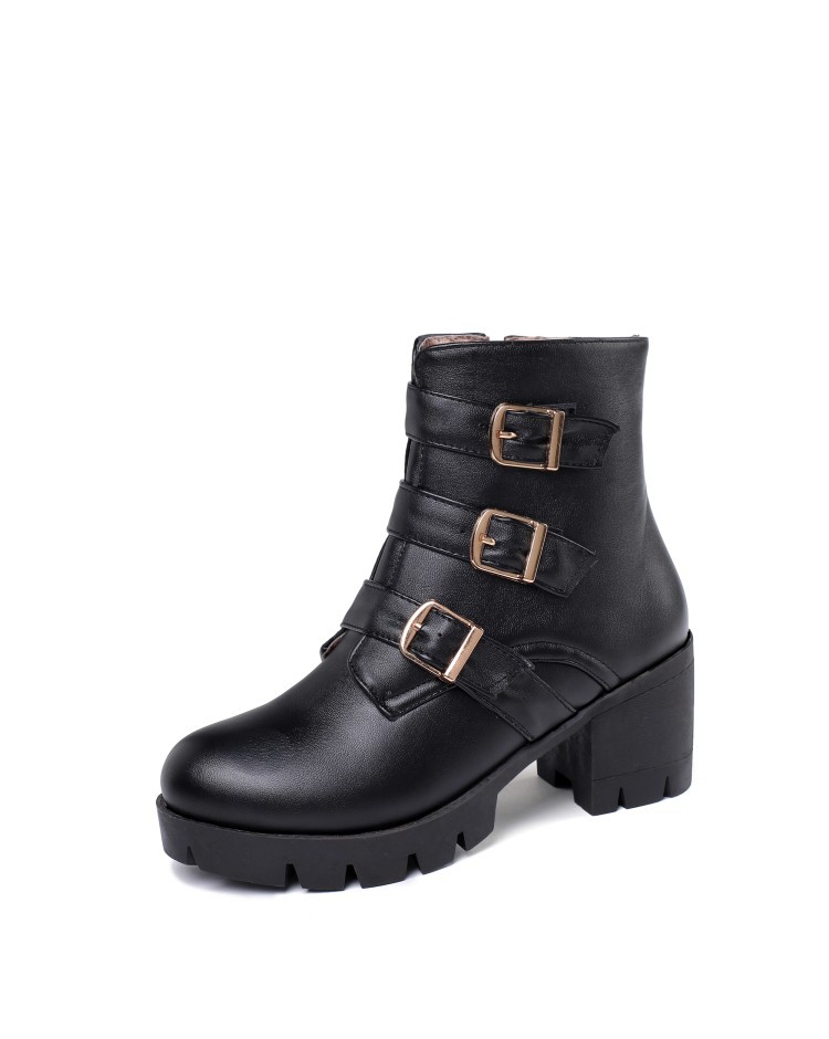 가을과 겨울 새로운 패션 하이힐 부츠 여성용 두꺼운 뒤꿈치 방수 테이블 해외 무역 40-46 플러스 사이즈 낮은 튜브 여성 신발