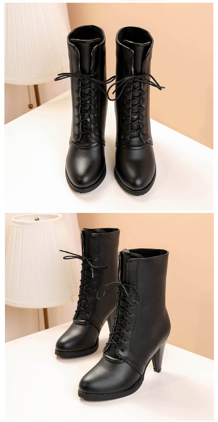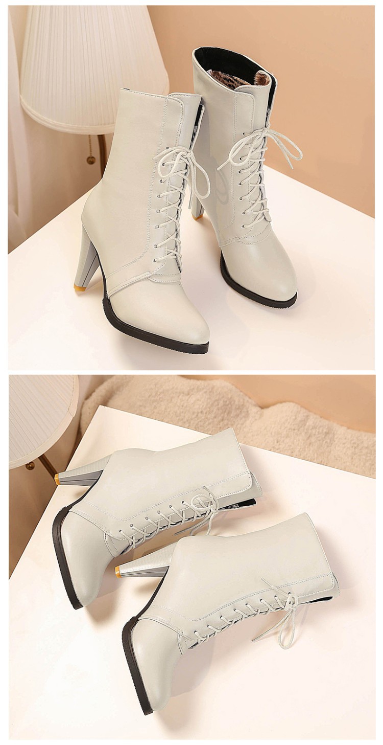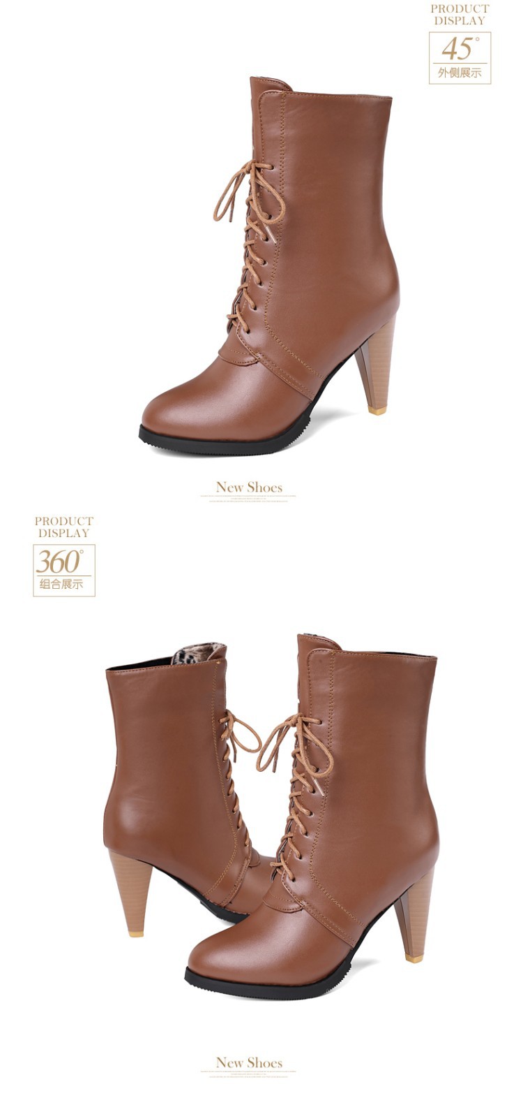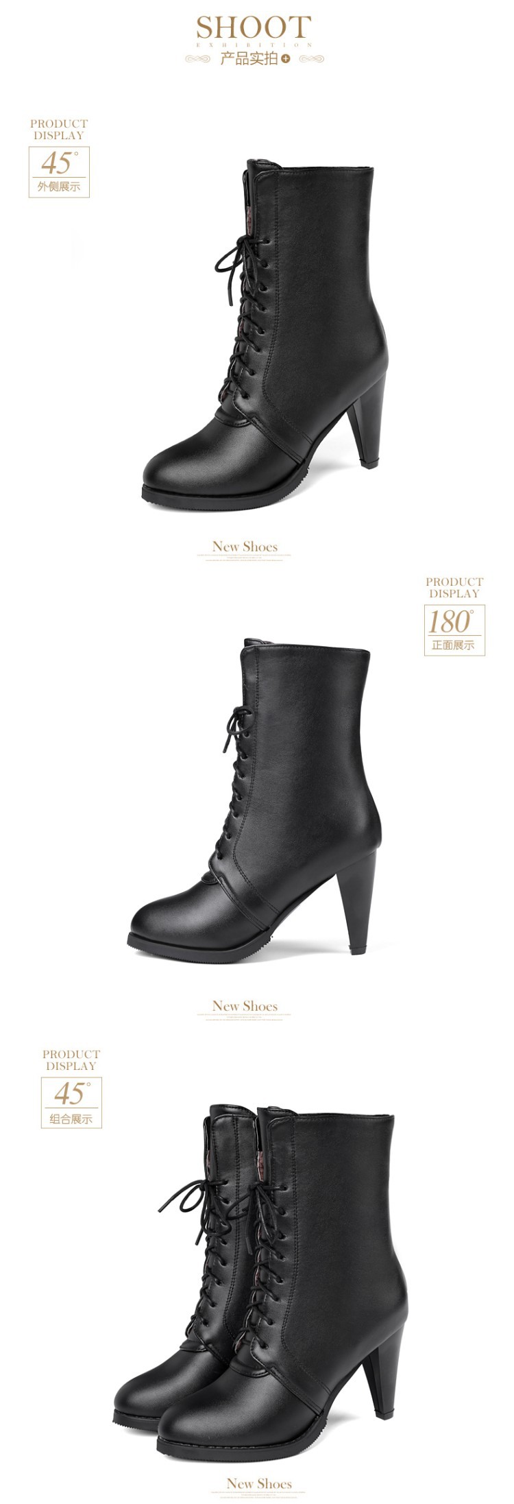 유럽과 미국의 뾰족한 발가락 레이스 업 짧은 부츠 여성 하이힐 마틴 부츠 여성 가을 및 겨울 여성 부츠 플러스 사이즈 여성 신발 34-45 대외 무역 국경스토어 가기