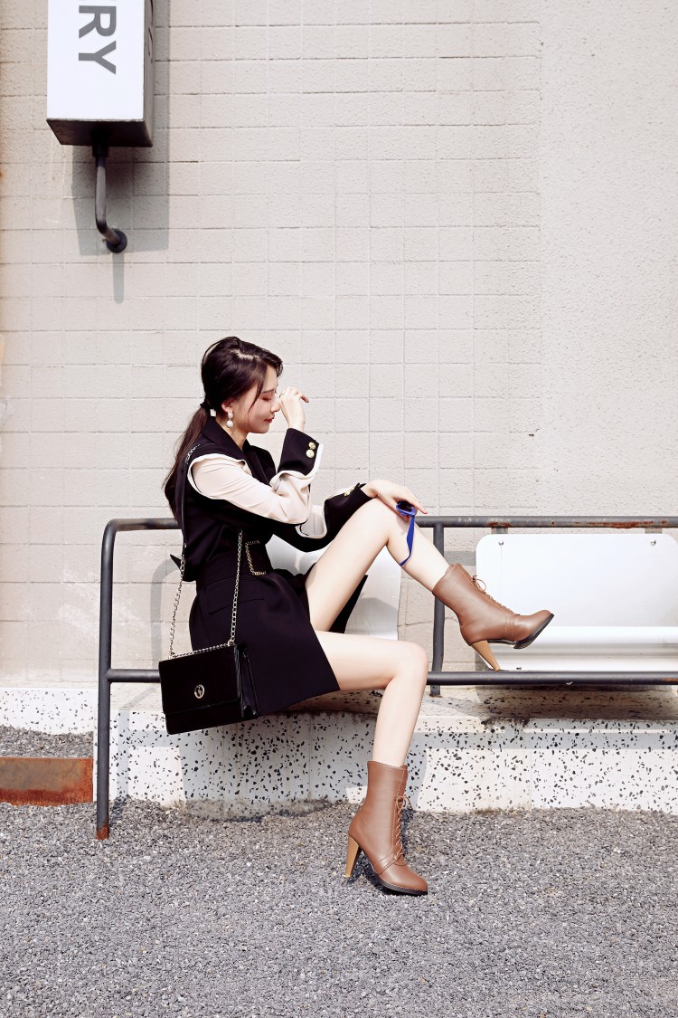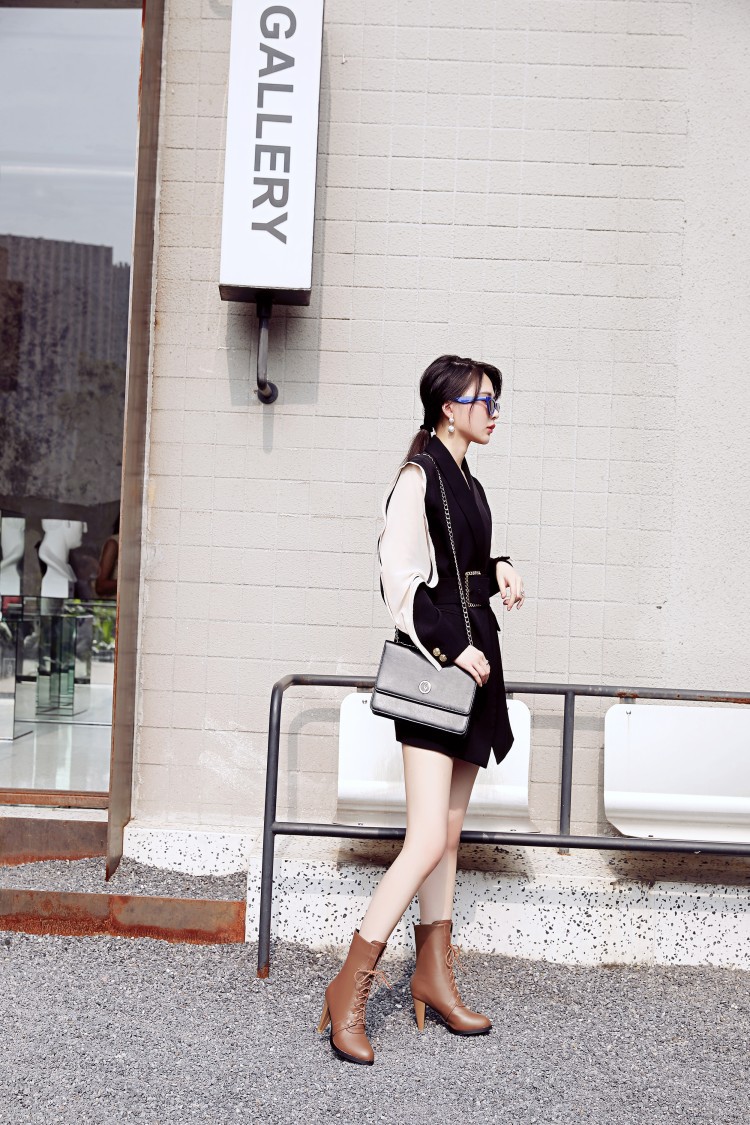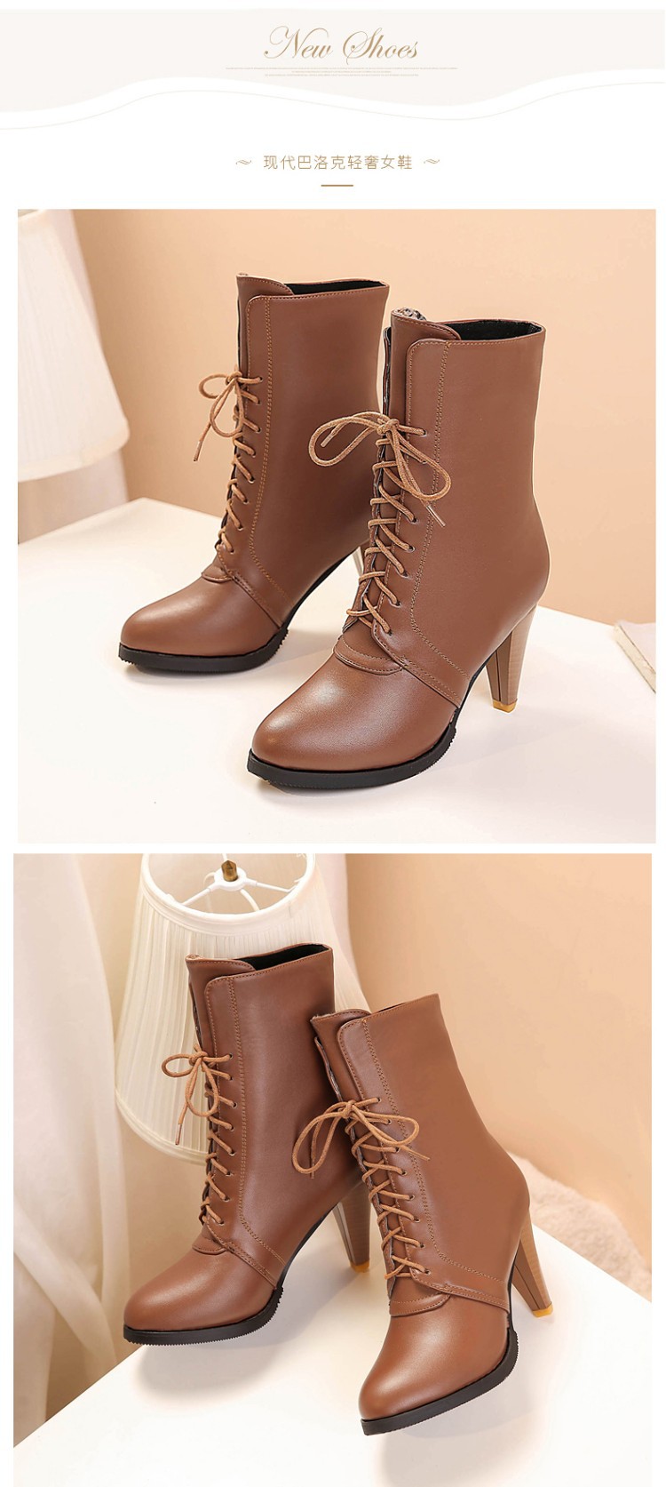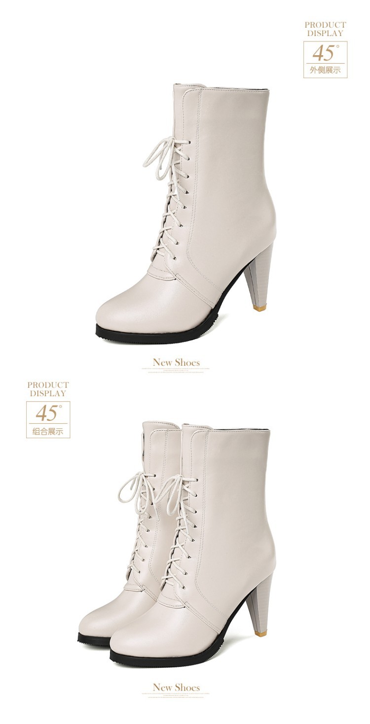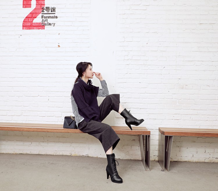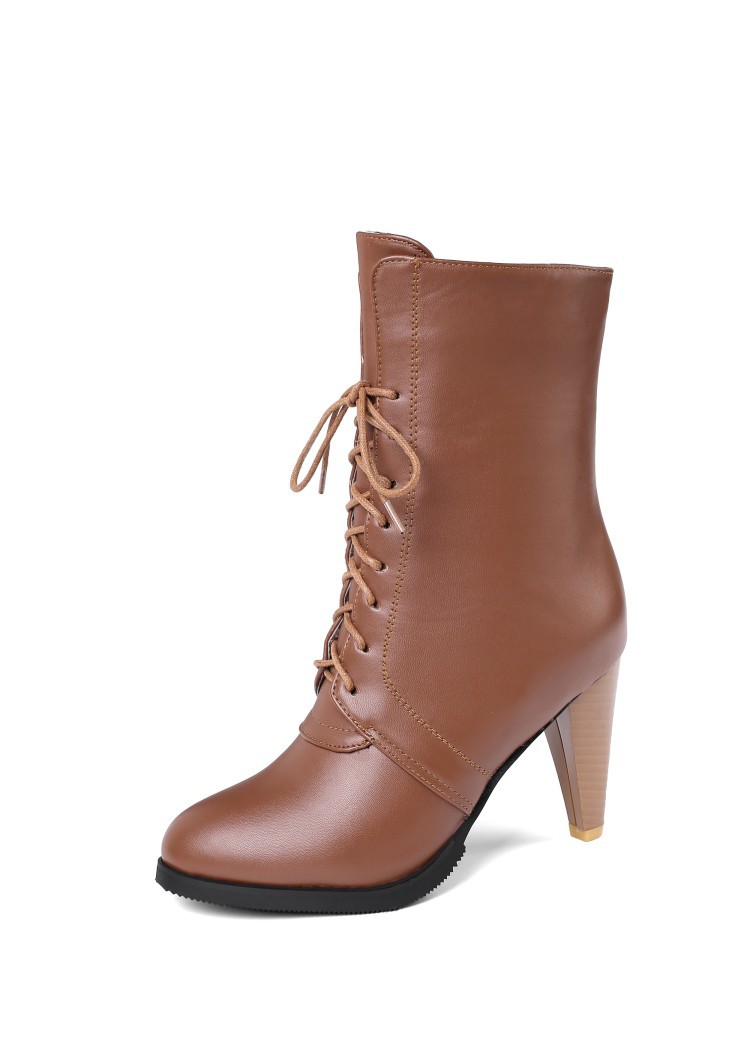 유럽과 미국의 뾰족한 발가락 레이스 업 짧은 부츠 여성 하이힐 마틴 부츠 여성 가을 및 겨울 여성 부츠 플러스 사이즈 여성 신발 34-45 대외 무역 국경스토어 가기