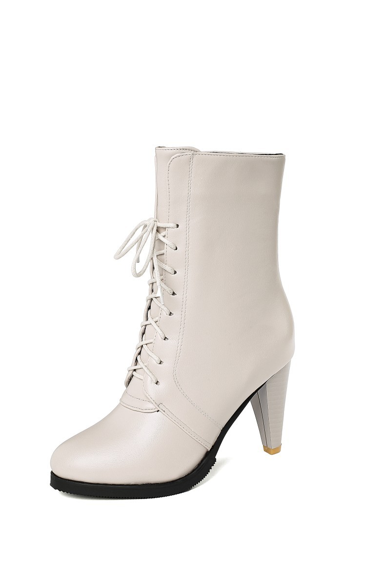 유럽과 미국의 뾰족한 발가락 레이스 업 짧은 부츠 여성 하이힐 마틴 부츠 여성 가을 및 겨울 여성 부츠 플러스 사이즈 여성 신발 34-45 대외 무역 국경