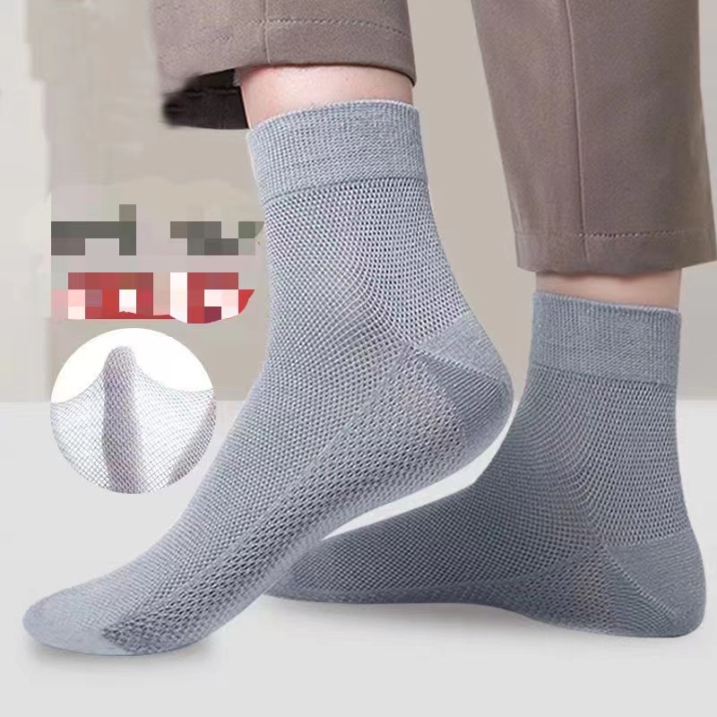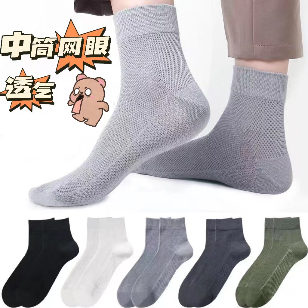 남성용 여름 중간 배럴 얇은 통기성 메쉬 땀 흡수 단색 메쉬 에어컨 미끄럼 방지 남성용 중간 배럴 스포츠 양말스토어 가기