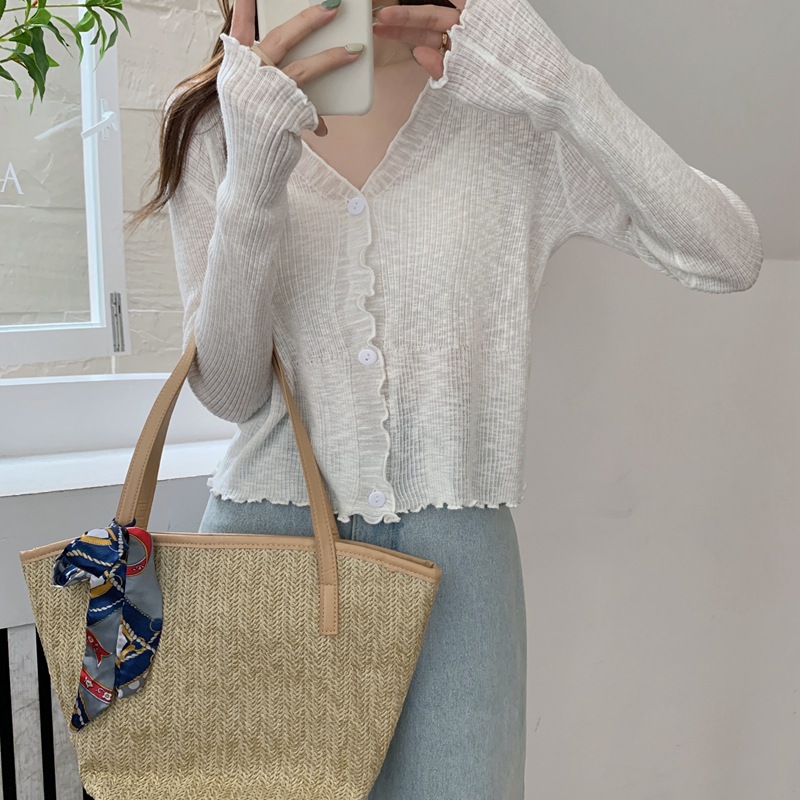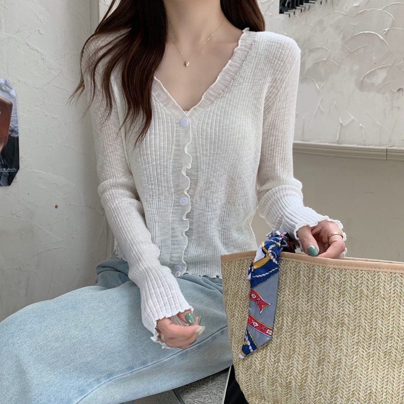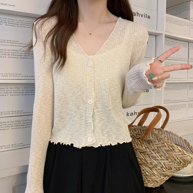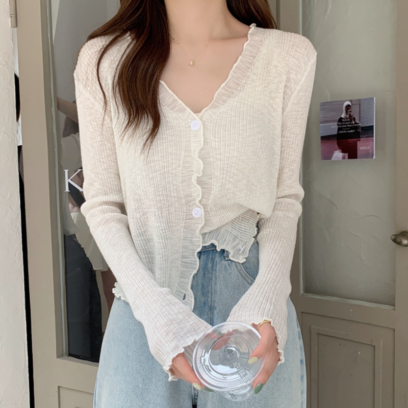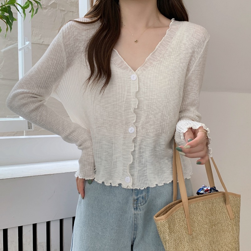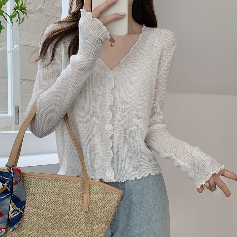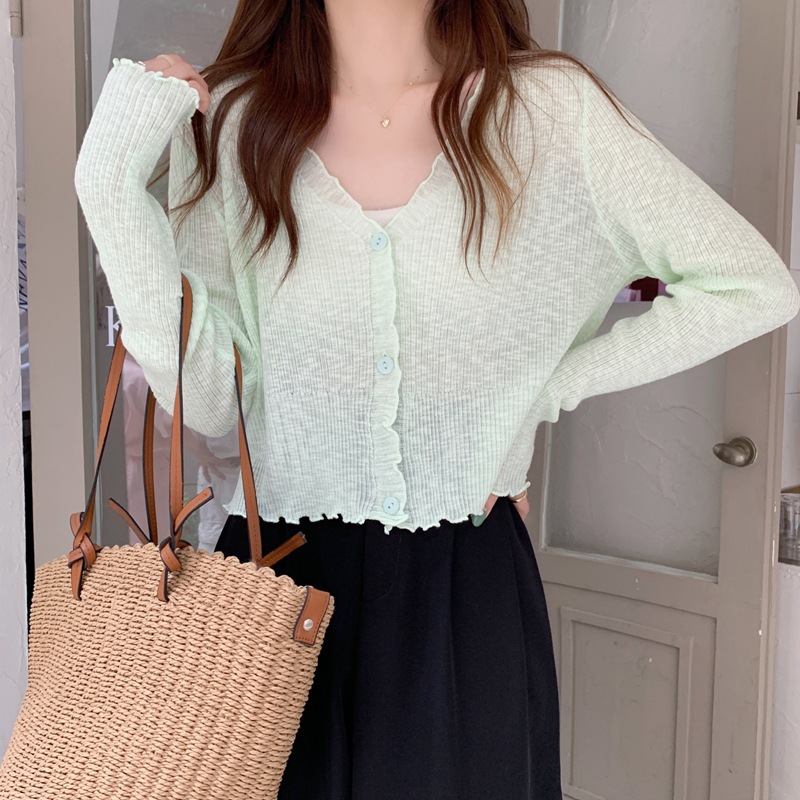 여성용 2025 여름 신상 얇은 니트 가디건 숄 메쉬 셔츠 짧은 재킷 트렌디스토어 가기