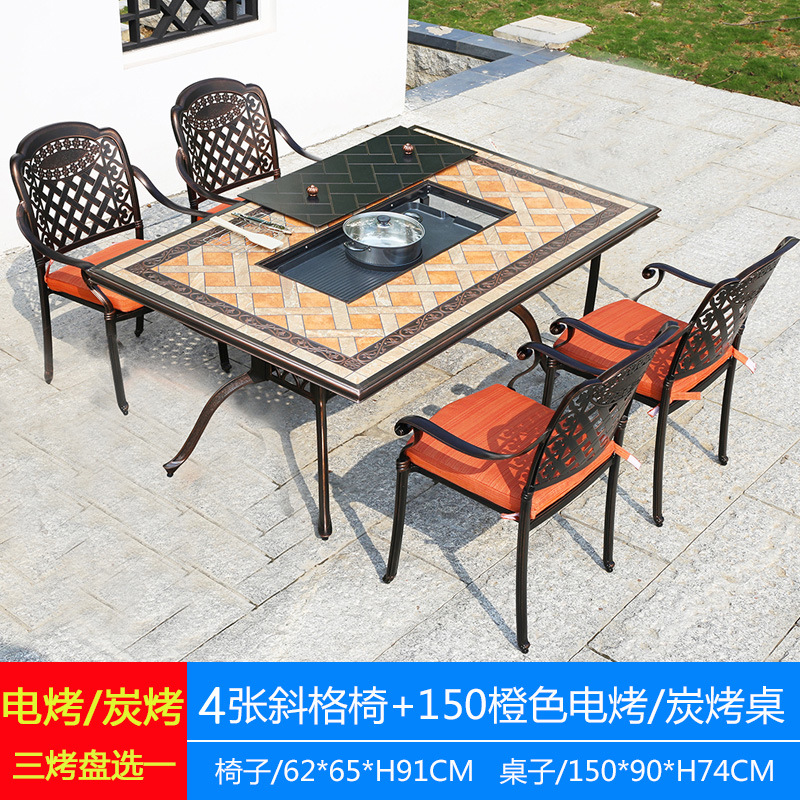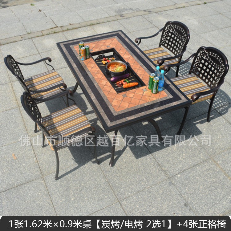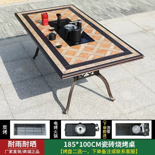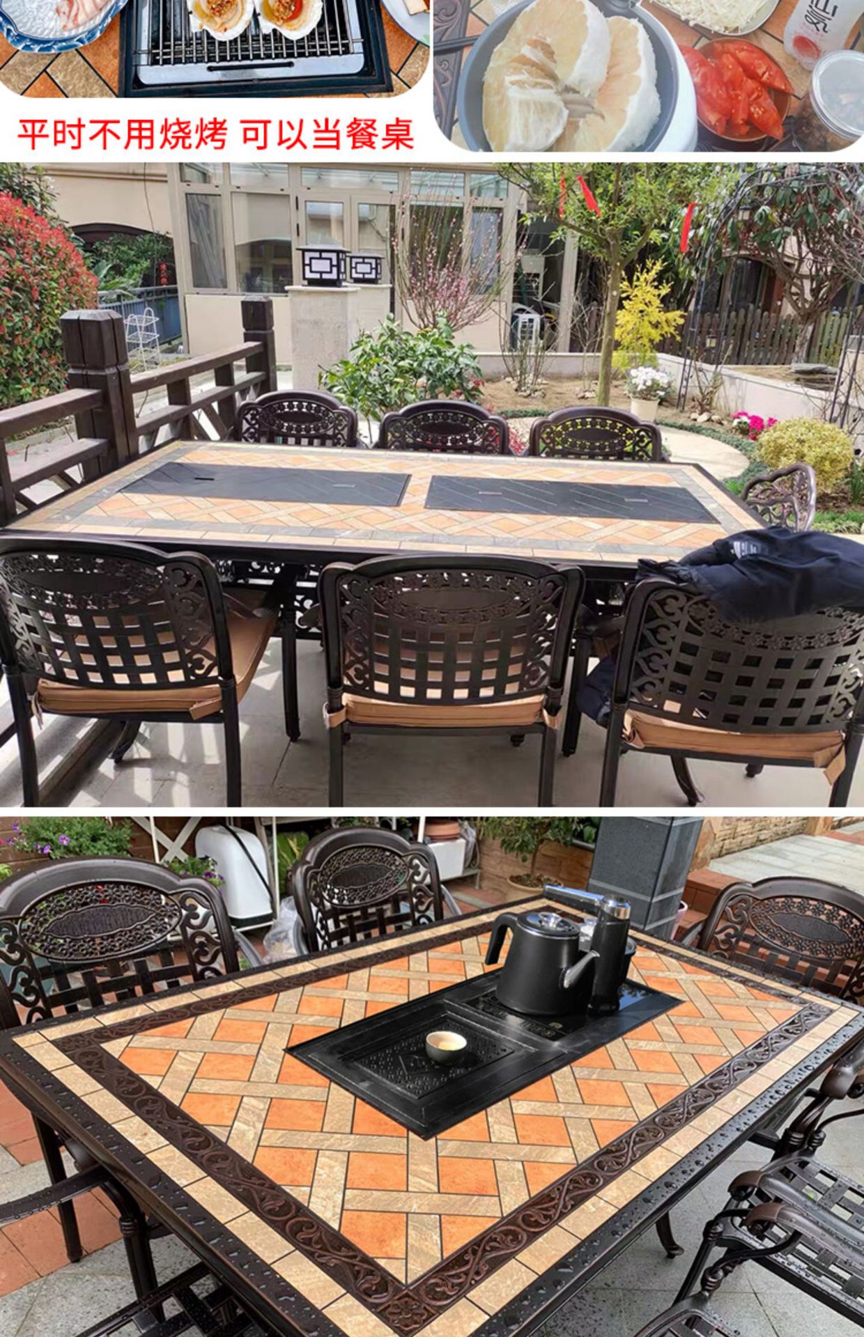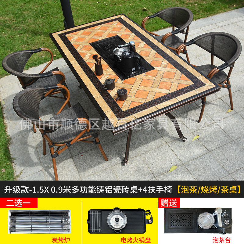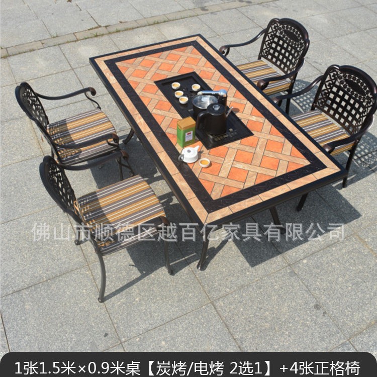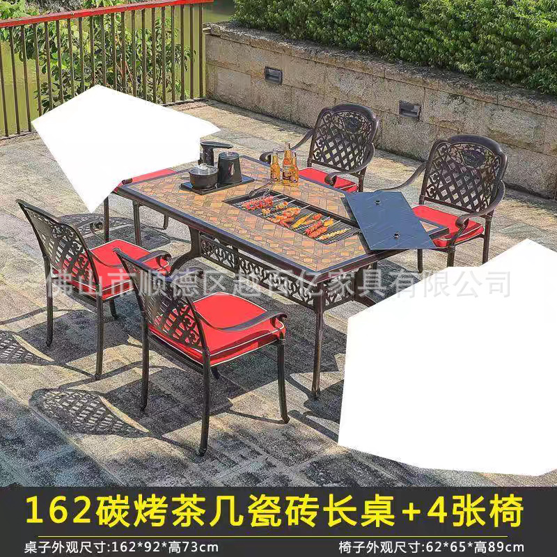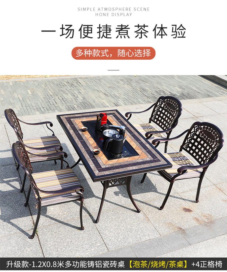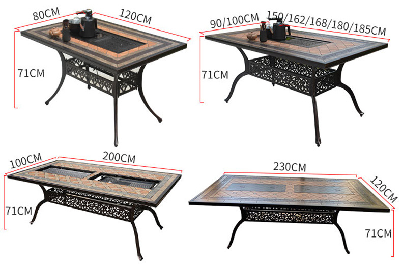 • 150*90 타일 바비큐 및 물 끓이는 테이블) + 주조 알루미늄 의자 4개(오븐 중 하나 선택)