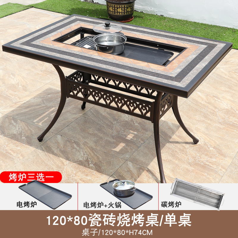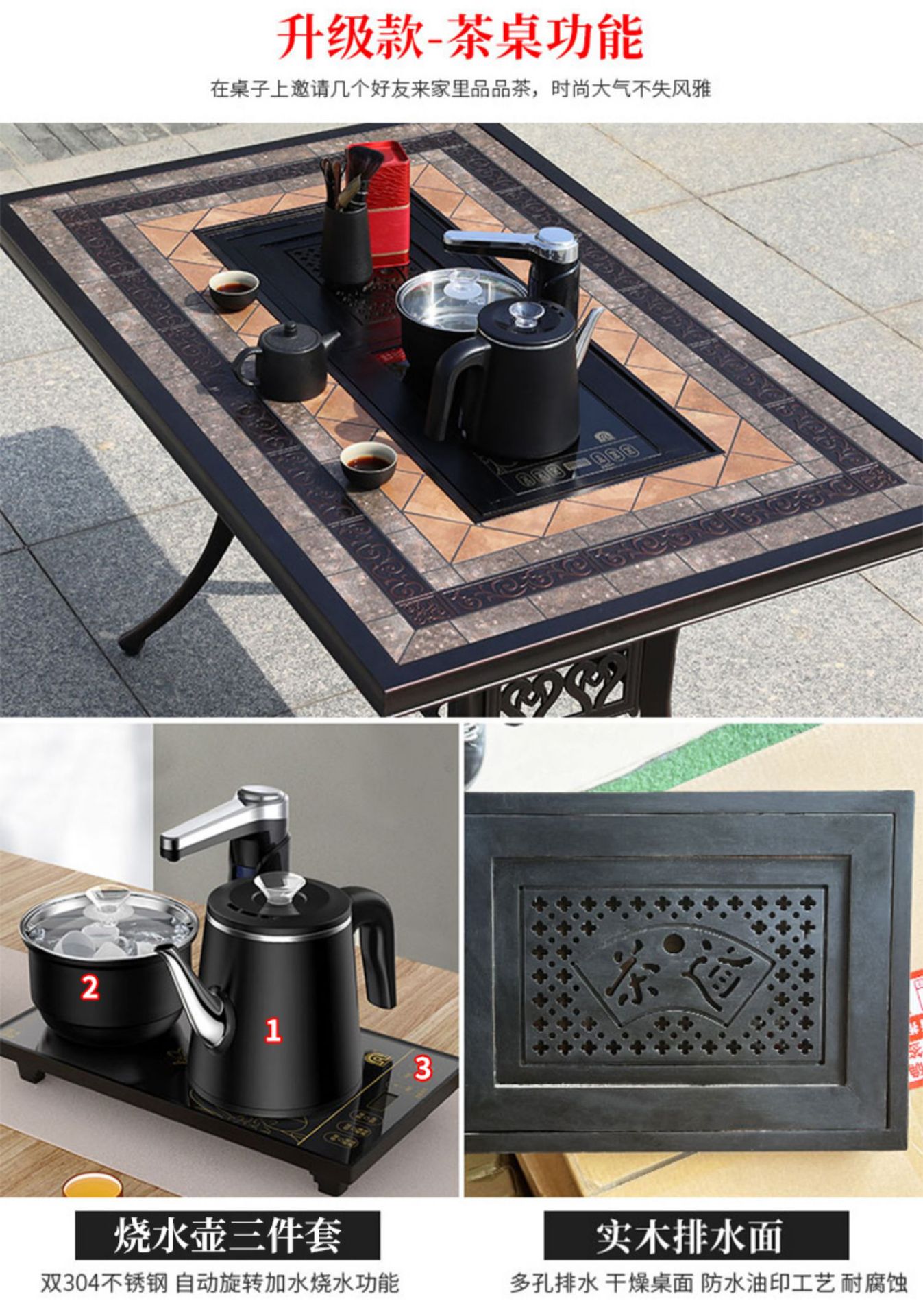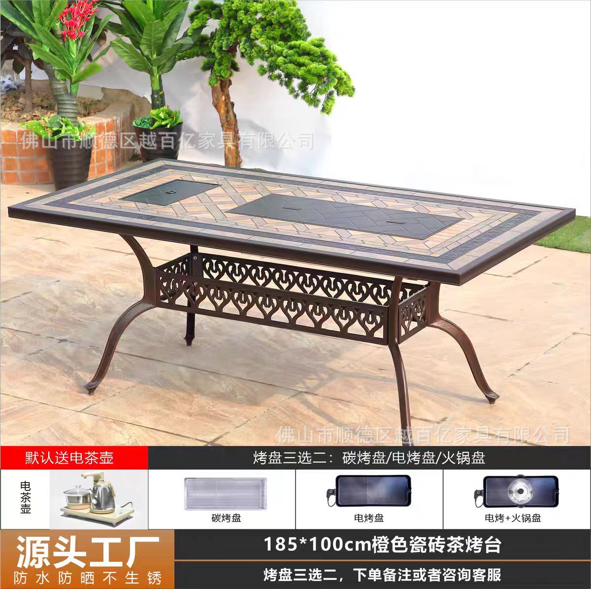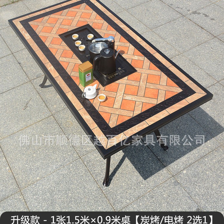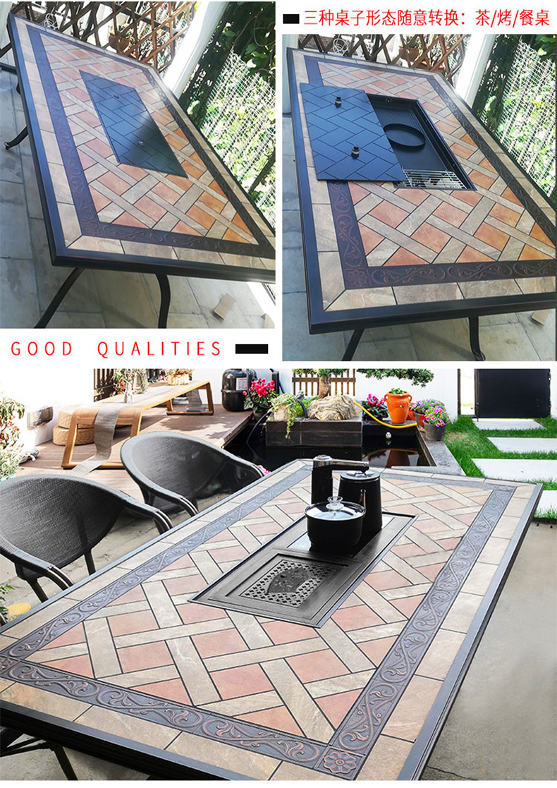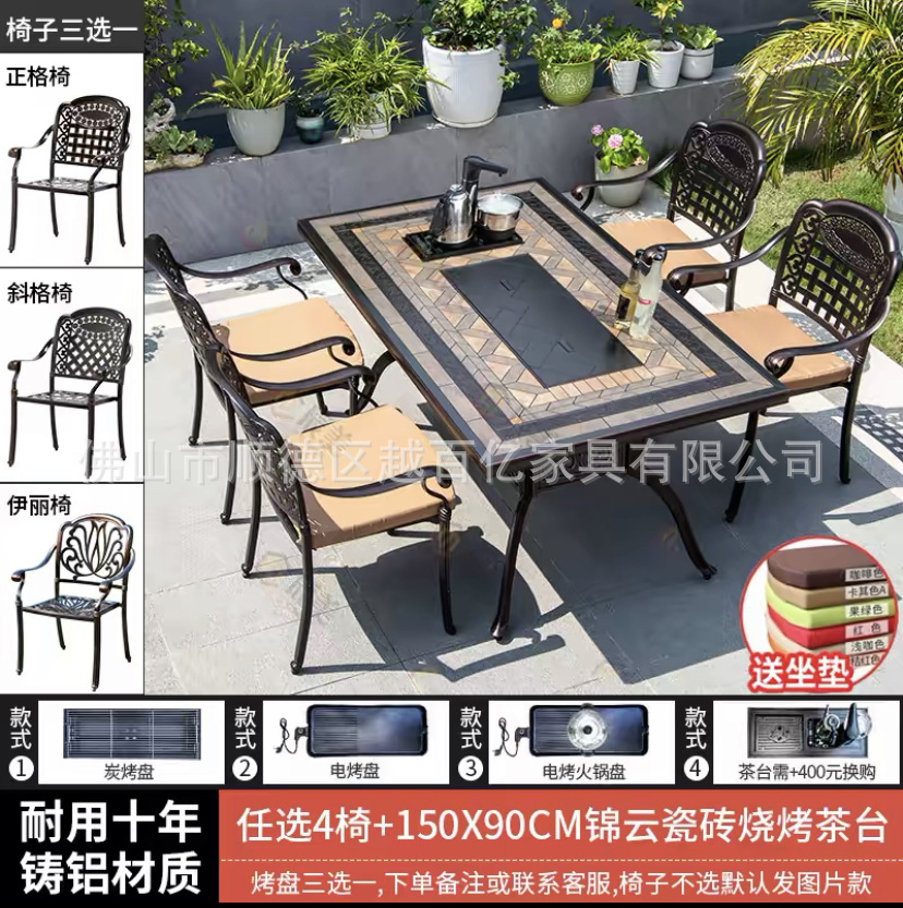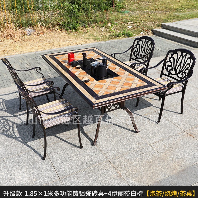 • 150*90 타일 바비큐 및 물 끓이는 테이블) + 주조 알루미늄 의자 4개(오븐 중 하나 선택)