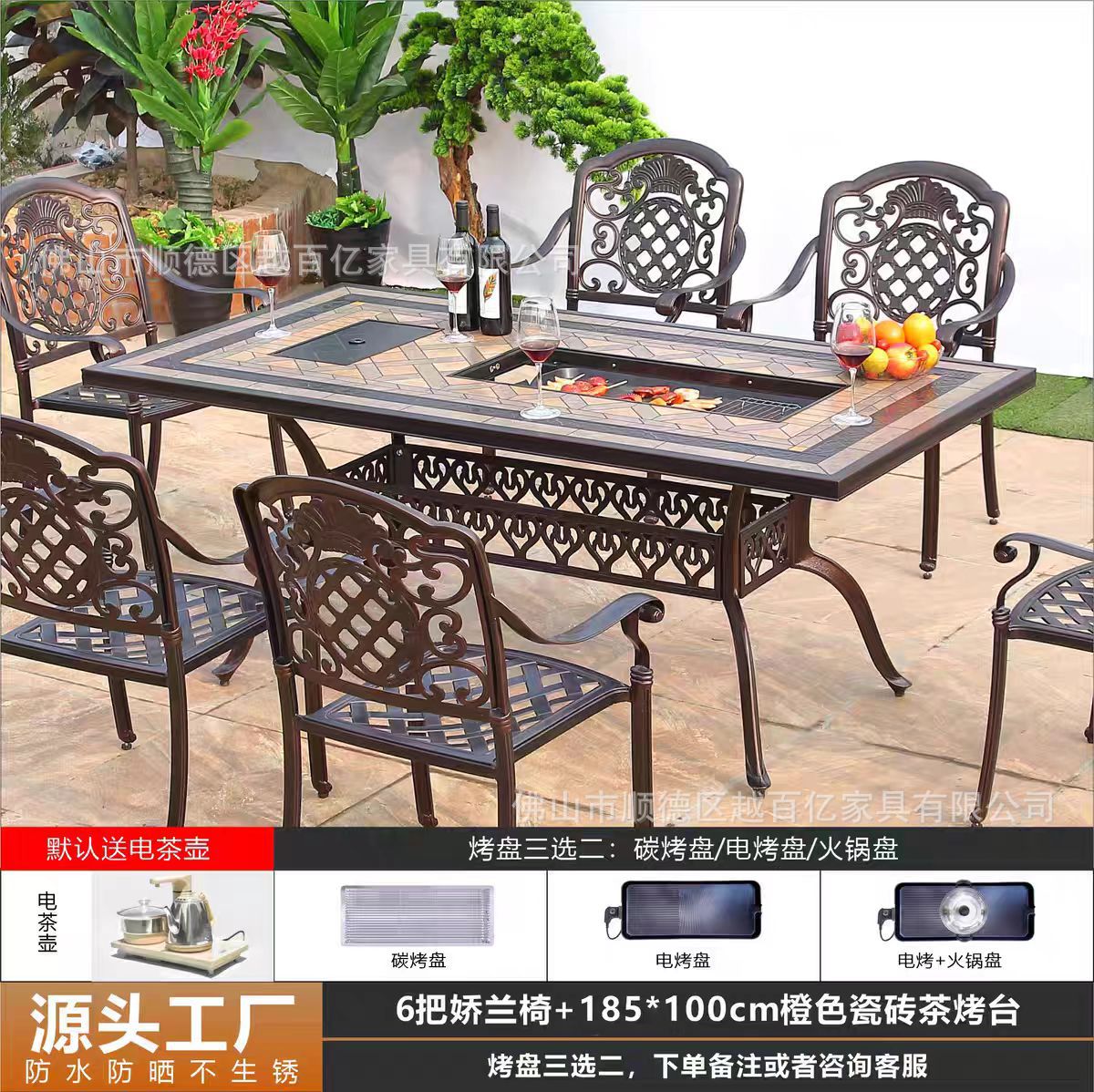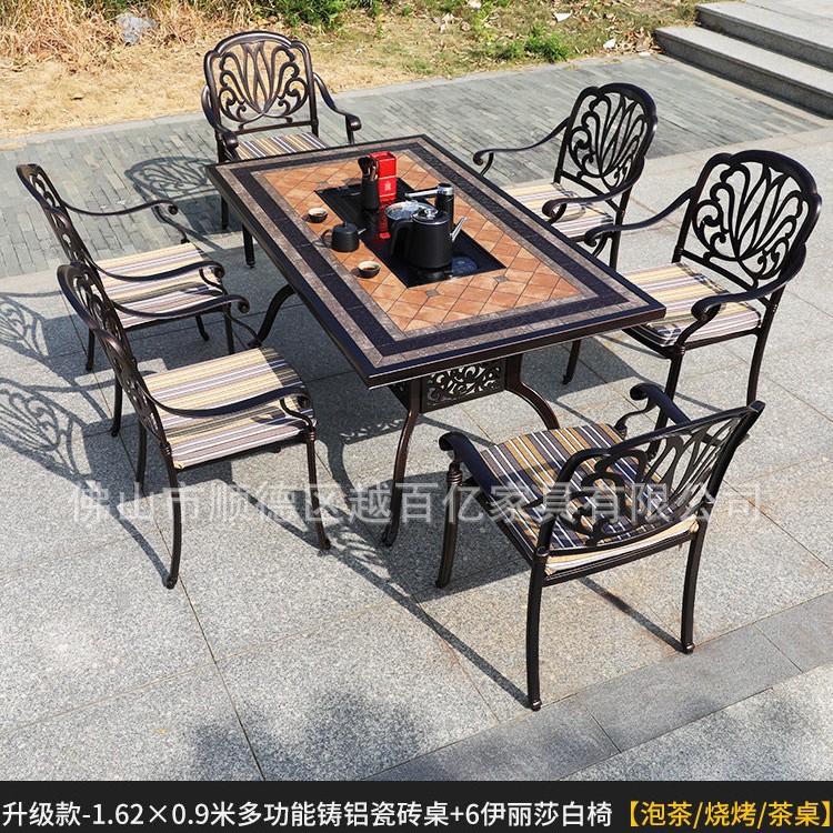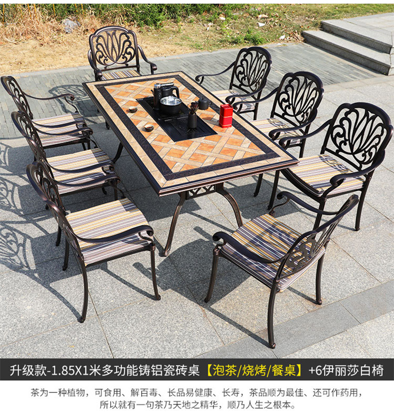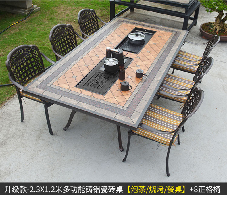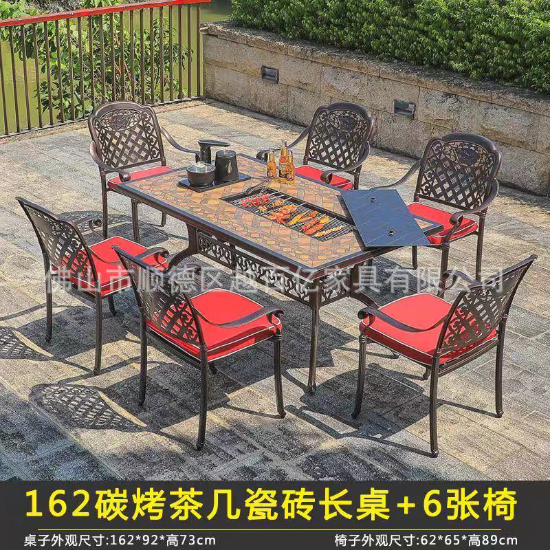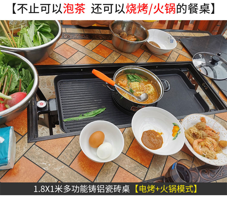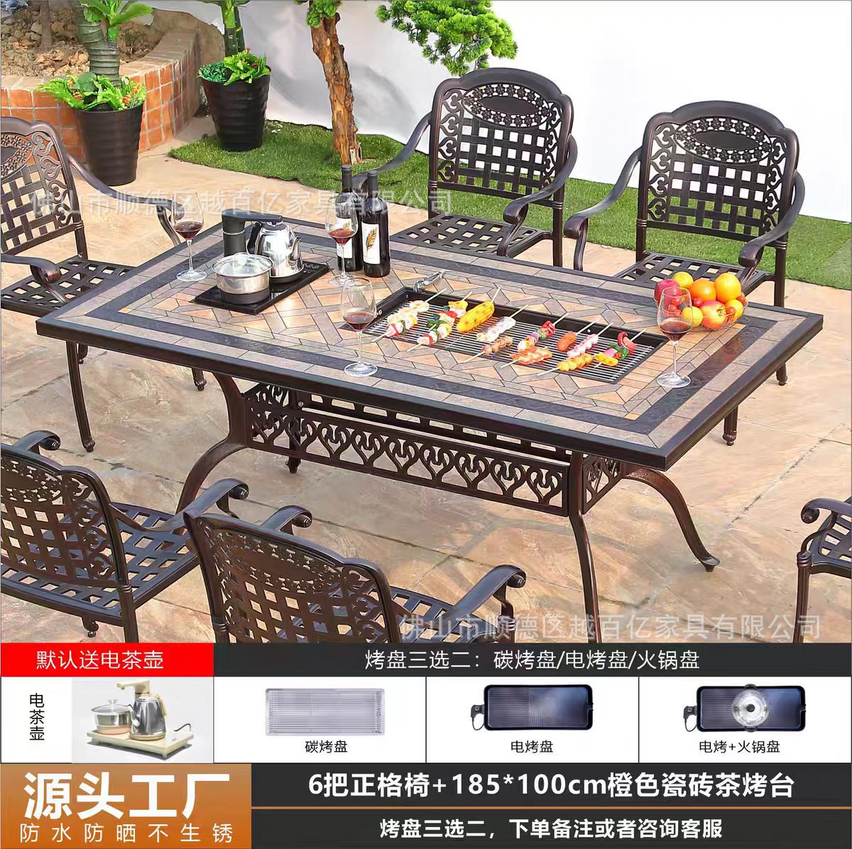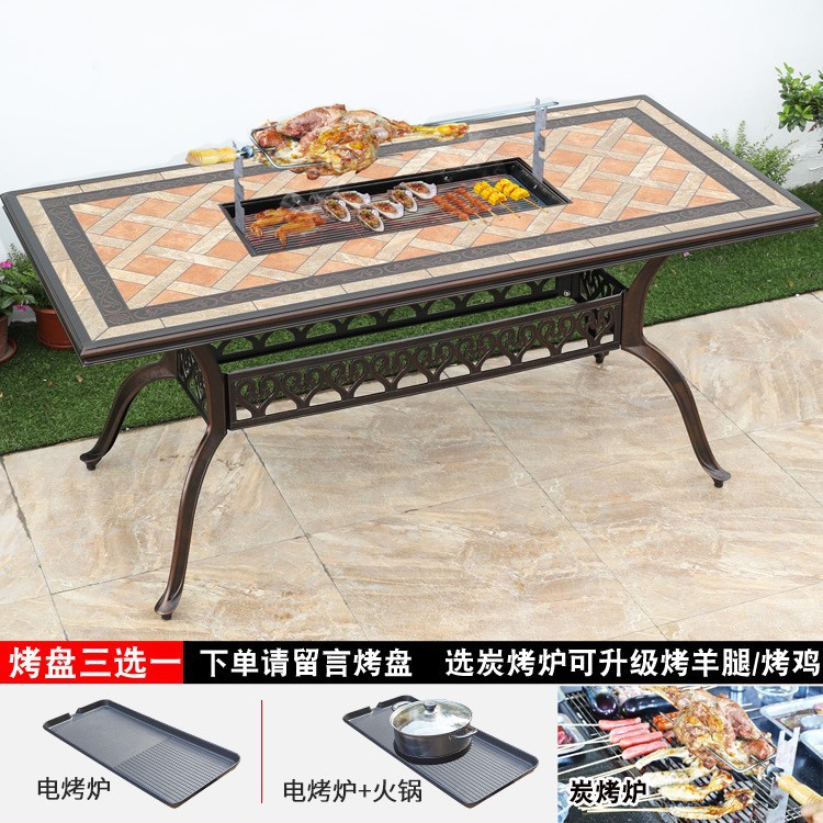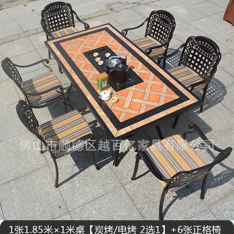 • 150*90 타일 바비큐 및 물 끓이는 테이블) + 주조 알루미늄 의자 4개(오븐 중 하나 선택)