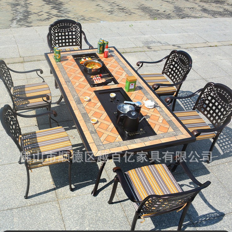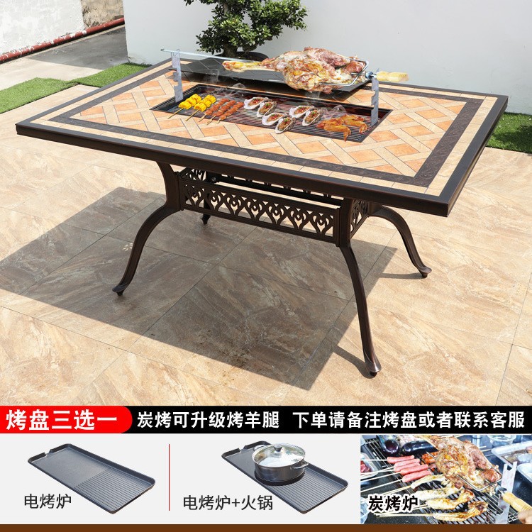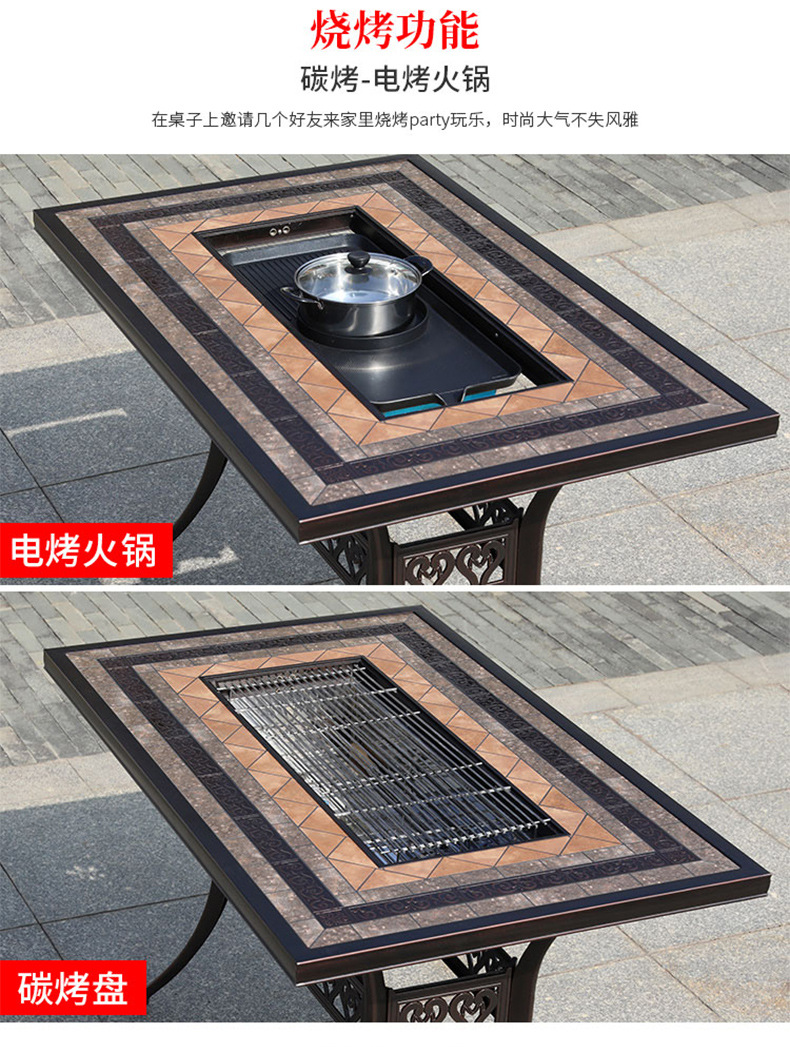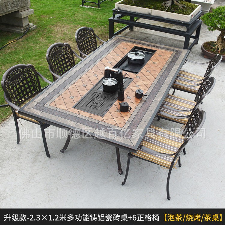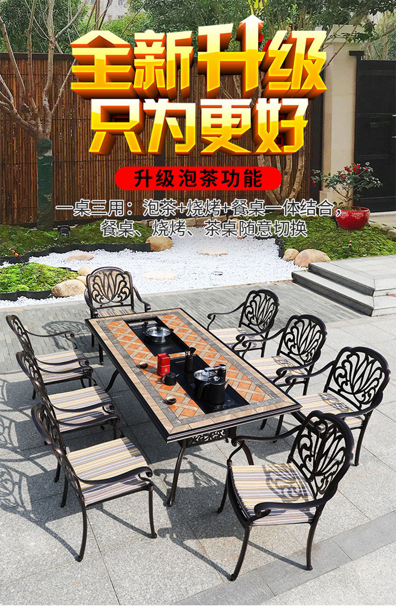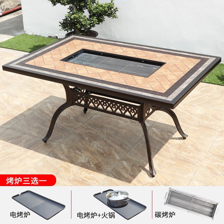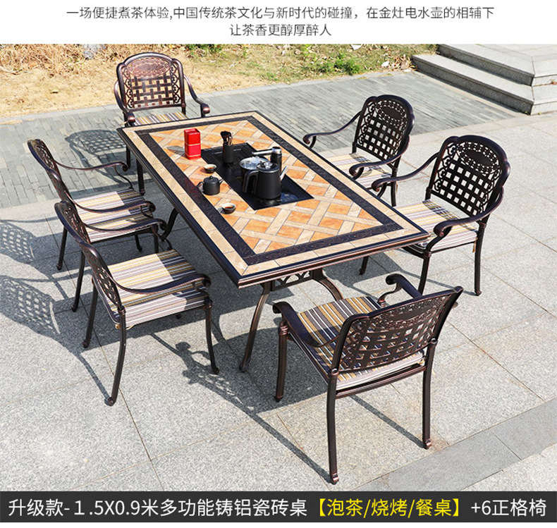 • 150*90 타일 바비큐 및 물 끓이는 테이블) + 주조 알루미늄 의자 4개(오븐 중 하나 선택)