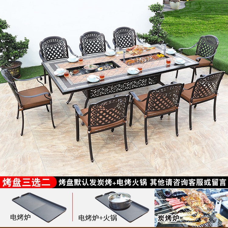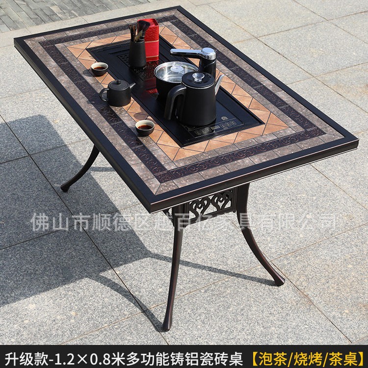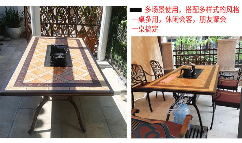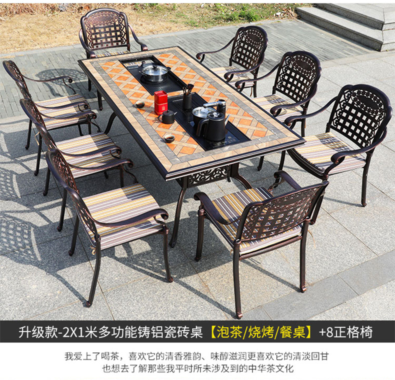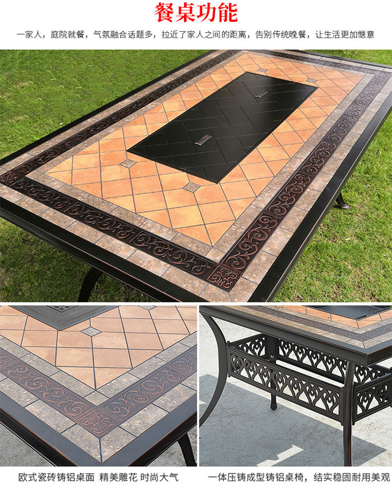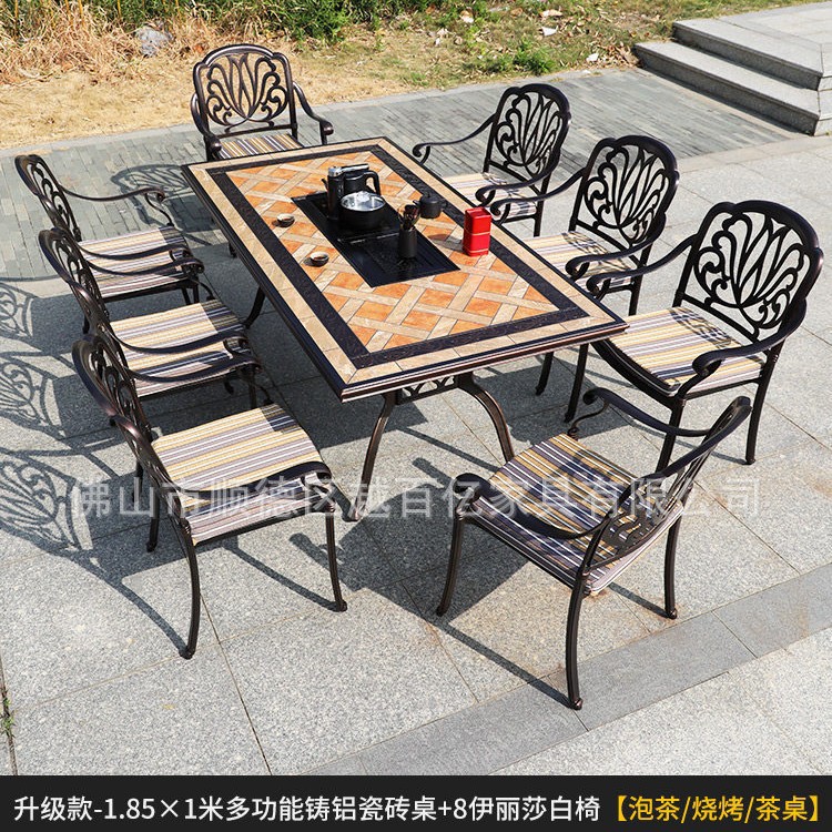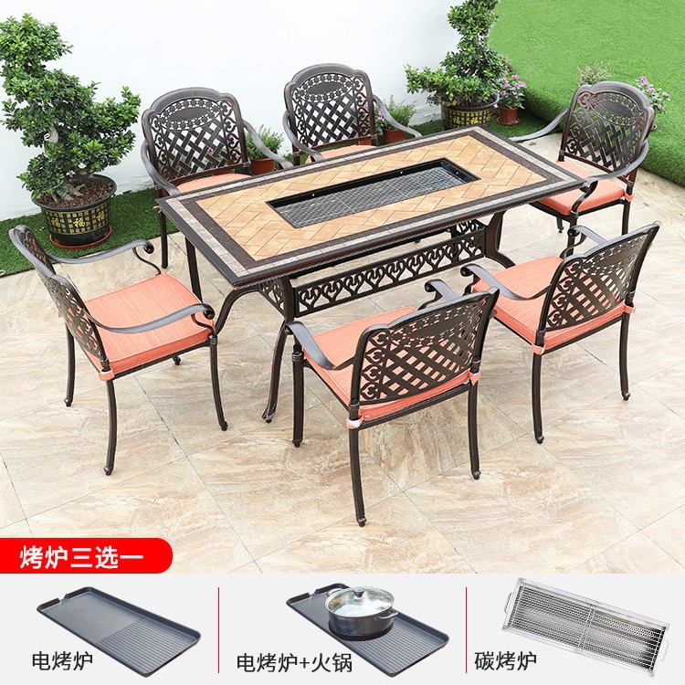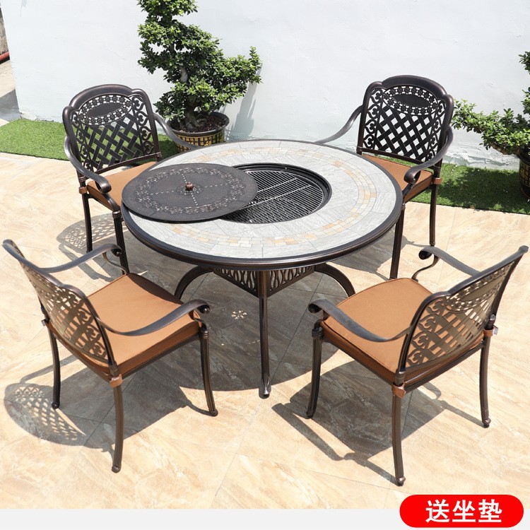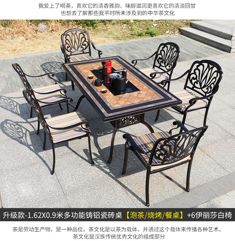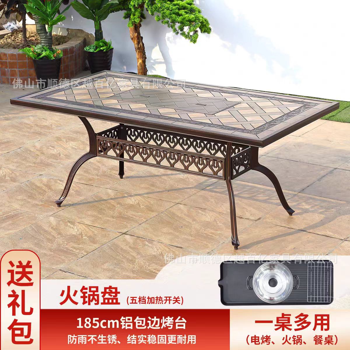 • 150*90 타일 바비큐 및 물 끓이는 테이블) + 주조 알루미늄 의자 4개(오븐 중 하나 선택)