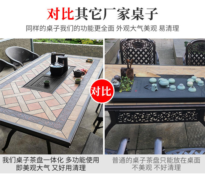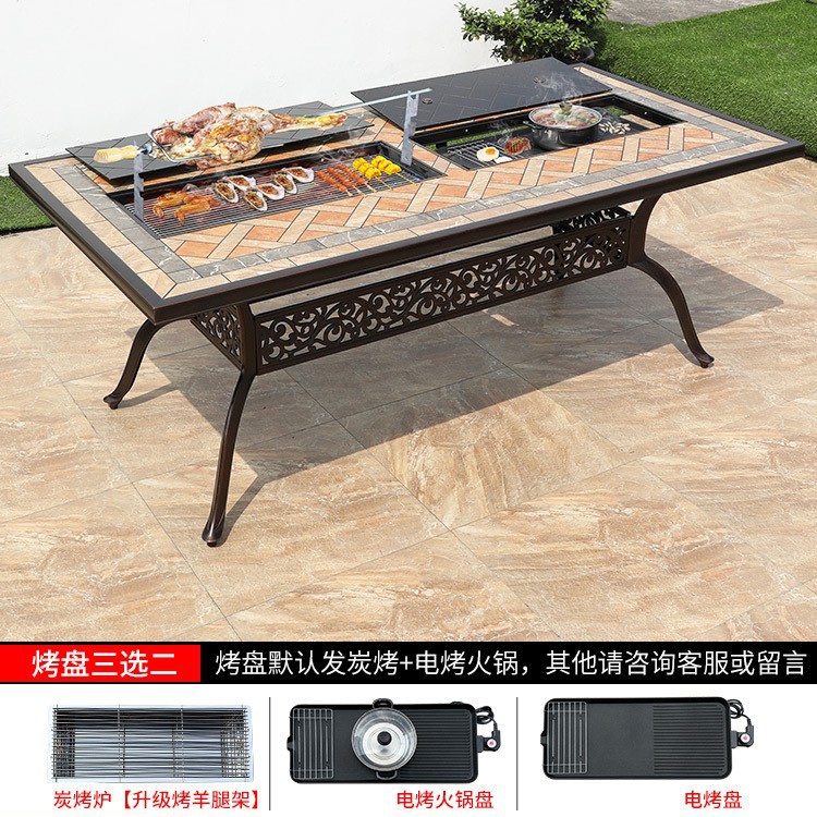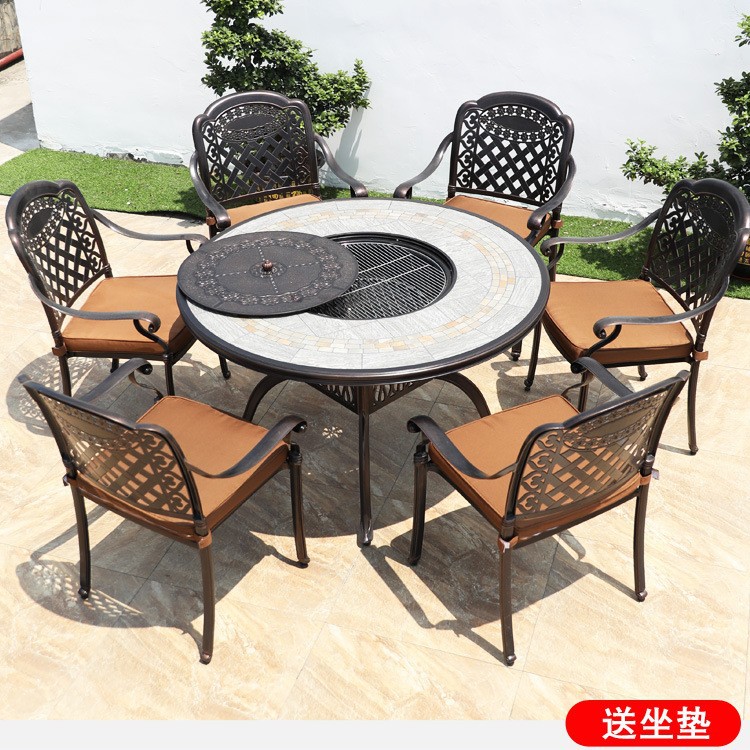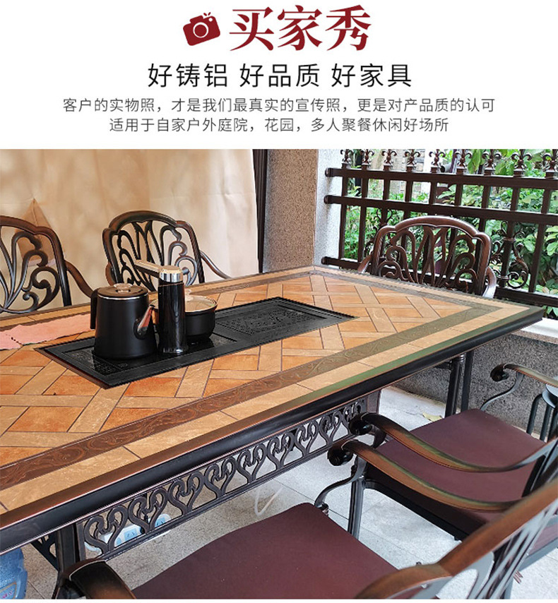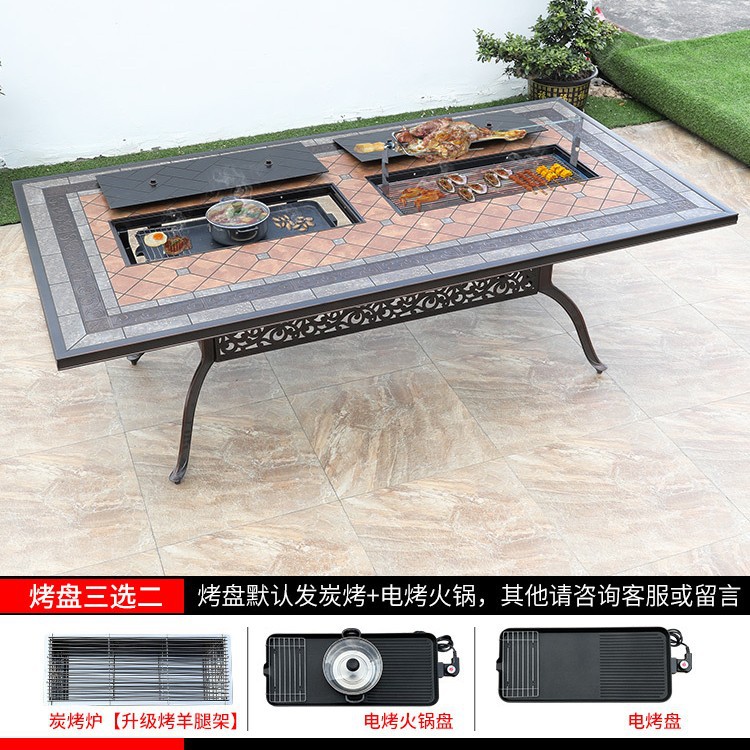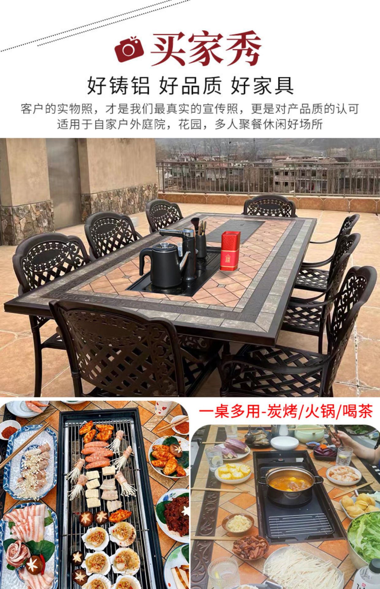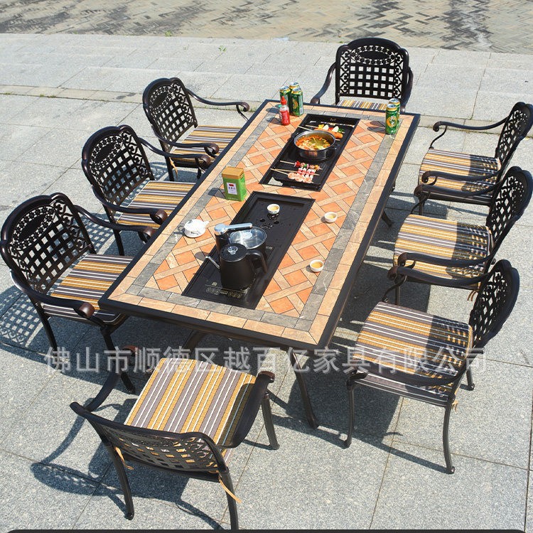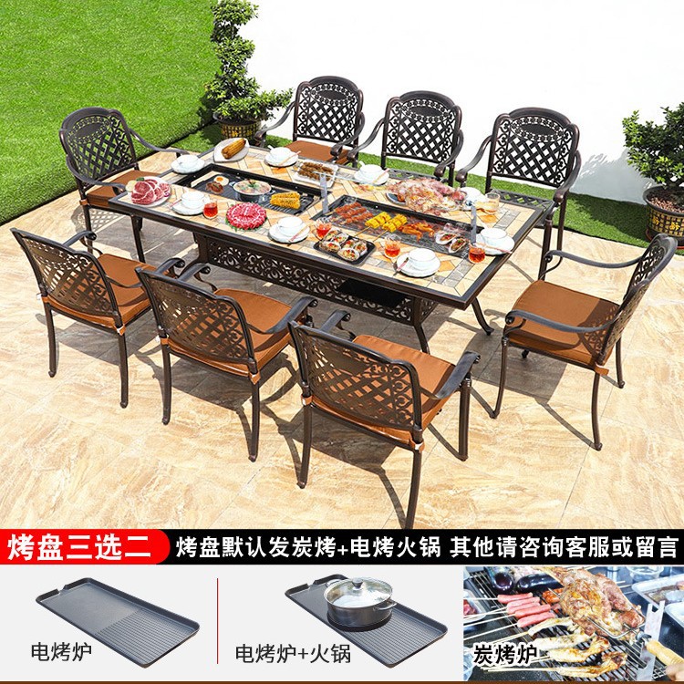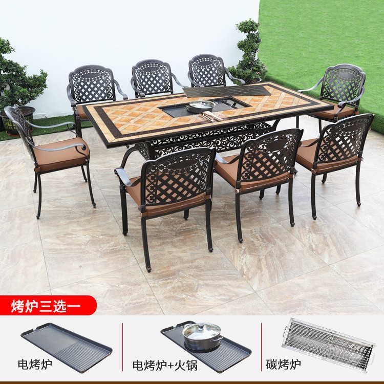 • 150*90 타일 바비큐 및 물 끓이는 테이블) + 주조 알루미늄 의자 4개(오븐 중 하나 선택)