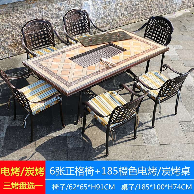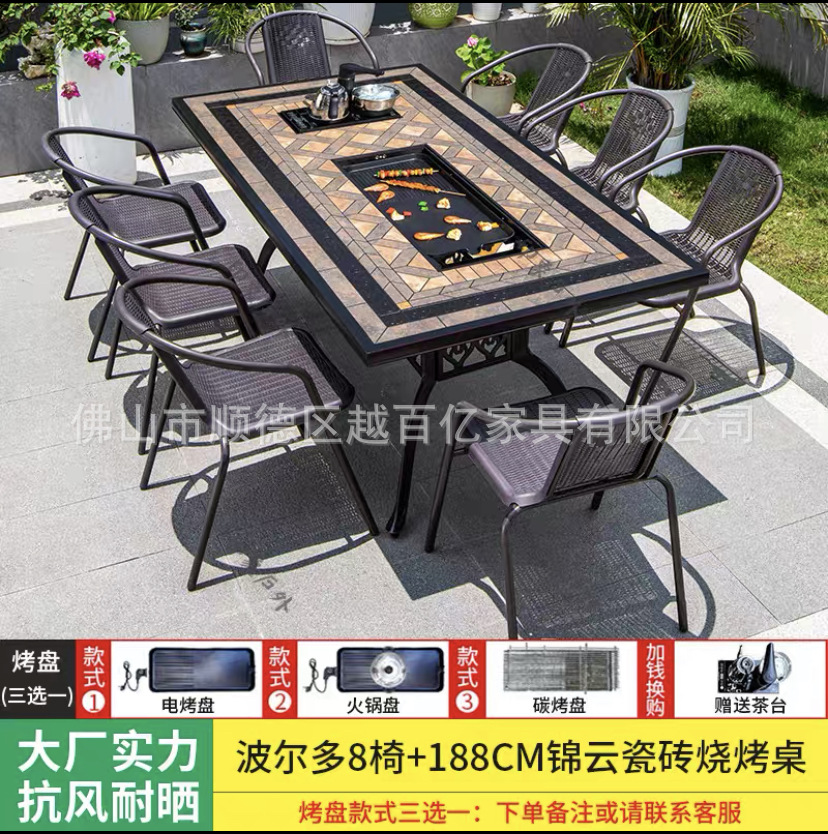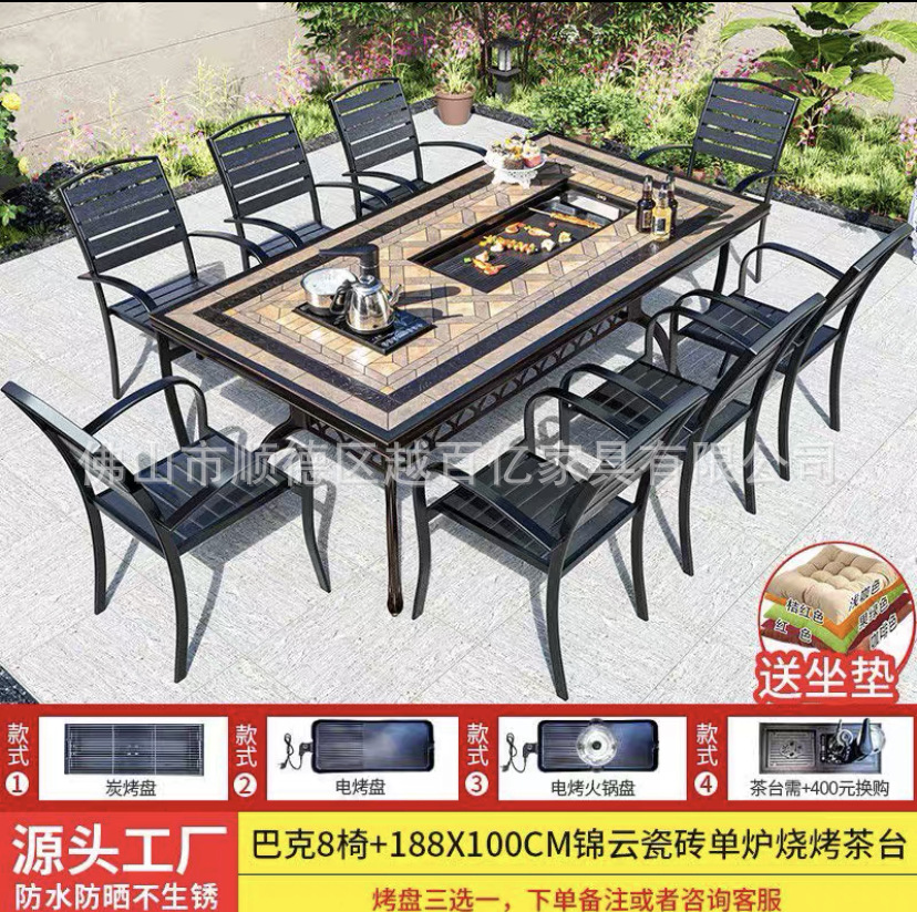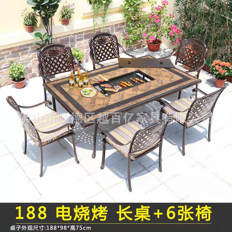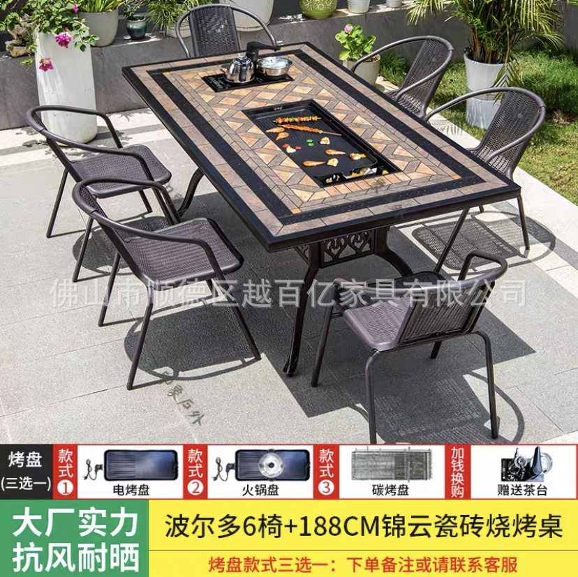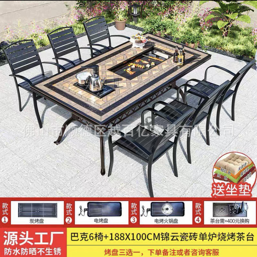• 188*100 타일 전기 그릴 테이블 + 풍경 사선 의자 6개 (방석 포함)